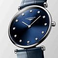 Компактный синий циферблат украшен 12 бриллиантами общим весом 0,081 карата. Элегантным дополнением стал ремешок из кожи аллигатора. Швейцарский кварцевый калибр L420 обеспечивает высокую точность хода. Сапфировое стекло не допускает появления царапин на поверхности.