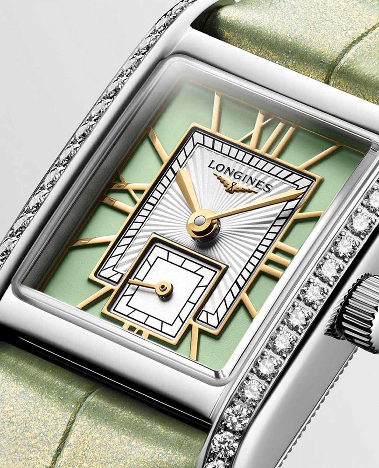 Женские швейцарские часы Longines DolceVita L5.200.0.05.2, кварцевый механизм с высокой точностью. Сапфировое стеклоСапфировое стеклоПрочный и надёжный материал из кристалла сапфира синтетического происхождения, характеризующийся особой твёрдостью и устойчивостью к царапинам и повреждениям. устойчивое к появлению царапин, обладающее высокой прозрачностью. Корпус инкрустирован 38 бриллиантами IF-VVS Top Wesselton. Двухцветный циферблат украшен римскими цифрами. Малая секундная стрелка в положении 6 часов. Класс водозащиты: 30 метров, позволит защитить корпус от случайных брызг или капель дождя. Ремешок из кожи аллигатора на стандартной застежке.