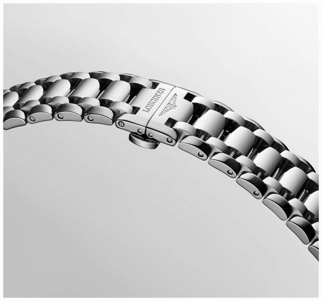 Женские швейцарские часы Longines PrimaLuna L8.126.4.87.6 - воплощает элегантность и женственность. Исключительно женственная коллекция, созданная с тщательным вниманием к деталям, она отражает изящность. Сапфировое стеклоСапфировое стеклоПрочный и надёжный материал из кристалла сапфира синтетического происхождения, характеризующийся особой твёрдостью и устойчивостью к царапинам и повреждениям. с антибликовым покрытиемАнтибликовое покрытиеСлой оксида металла в 0,13-0,3 микрон, благодаря которому стекло часов не бликует и не отражает свет. Антибликовое покрытие уменьшает отражение света в 10 раз, обеспечивая отличную читаемость показателей циферблата. устойчивое к появлению царапин, обладающее высокой прозрачностью. Корпус часов изготовлен из нержавеющей стали, диаметром 34 мм и толщиной 11,60 мм идеально подходит для изящного запястья. Указатель фазы луны в положении 6 часов. На циферблате также расположены 14 бриллиантов высшего качества Wesselton VS-SI, которые служат часовыми метками. Класс водозащиты: 30 метров позволит защитить корпус от случайных брызг или капель дождя. Стальной браслет на застёжке «бабочка» с кнопкамиЗастёжка "бабочка"Такой вид застёжки дополняется предохранителями, помогающими избежать случайного раскрытия браслета. Обладают изящным исполнением. обеспечивает комфортную посадку на запястье. Внутри корпуса скрывается надежный автоматический механизм, гарантирующий точность хода и долгий срок службы. Каждая модель Longines PrimaLuna излучает красоту, которая неподвластна мимолетным тенденциям.
