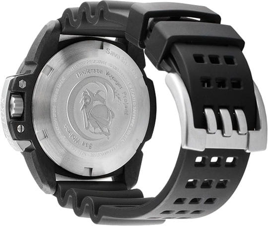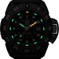 Часы Luminox XS.1551 представляют собой сочетание швейцарского качества и современных технологий, создавая надежный аксессуар для любителей активного образа жизни и дайвинга. В их основе лежит кварцевый механизм, обеспечивающий точность и долговечность. Корпус часов выполнен из прочного пластика, усиленного прессованным карбономКарбонОт «carbon», «carbone» - углерод, углепластик - полимерный композиционный материал из переплетённых под определенным углом между собой нитей углеродного волокна, применяется для изготовления лёгких, но прочных деталей. В часах часто используют для украшения циферблатов и ремешков. Так же карбон используется в изготовлении корпусов. Такие корпуса обладают антикоррозионным свойством, не поддаются электромагнитному излучению, обладают повышенной прочностью и противоударностью., что делает их легкими и устойчивыми к повреждениям. Эти часы обладают черным циферблатом и надежным каучуковым ремешком с классической застежкой, обеспечивающим комфортное ношение в любых условиях. Водозащита до 300 метров позволяет использовать часы при погружениях на значительные глубины, а LLTLLTLLT — это автономный механизм подсветки, основанный на использовании микроскопических газонаполненных элементов. Специальные герметичные капсулы из боросиликатного стекла, интегрированные в циферблат, генерируют свечение без необходимости подключения к внешним источникам энергии. Для их работы не требуется ни дополнительный свет, ни механическое воздействие (например, нажатие кнопки). Свечение возникает благодаря химическому процессу: реакция между тритием, заключенным в капсулах, и люминофорным покрытием создает стабильное автономное освещение. Технология обеспечивает энергетическую независимость и долговечность подсветки.-подсветка гарантирует отличную видимость в темноте. Сапфировое стеклоСапфировое стеклоПрочный и надёжный материал из кристалла сапфира синтетического происхождения, характеризующийся особой твёрдостью и устойчивостью к царапинам и повреждениям. с антибликовым покрытиемАнтибликовое покрытиеСлой оксида металла в 0,13-0,3 микрон, благодаря которому стекло часов не бликует и не отражает свет. Антибликовое покрытие уменьшает отражение света в 10 раз, обеспечивая отличную читаемость показателей циферблата. защищает циферблат от царапин и уменьшает отражения, обеспечивая легкость считывания информации. Функция календаря с указанием числа добавляет практичности, а 12- и 24-часовой формат времени позволяет выбрать наиболее удобное отображение. Завинчивающаяся заводная головка с защитой и стальная задняя крышка обеспечивают дополнительную герметичность и прочность конструкции. Вращающийся в одном направлении безельБезельВнешний ободок, закрепляющий стекло. В спортивных часах так называется поворотное кольцо с делениями на циферблате, выполняет роль таймера – замеряет отрезки времени на шкале. Неподвижный безель – элемент декора. Однонаправленно вращающийся безель на дайверских часах позволяет фиксировать моменты погружения и выныривания на поверхность. помогает отслеживать время погружения, что делает эти часы идеальными для дайверов. Габариты часов составляют 45 мм в диаметре и 15 мм в толщину, при весе всего 91 г, что делает их удобными для повседневного использования и при занятиях спорто