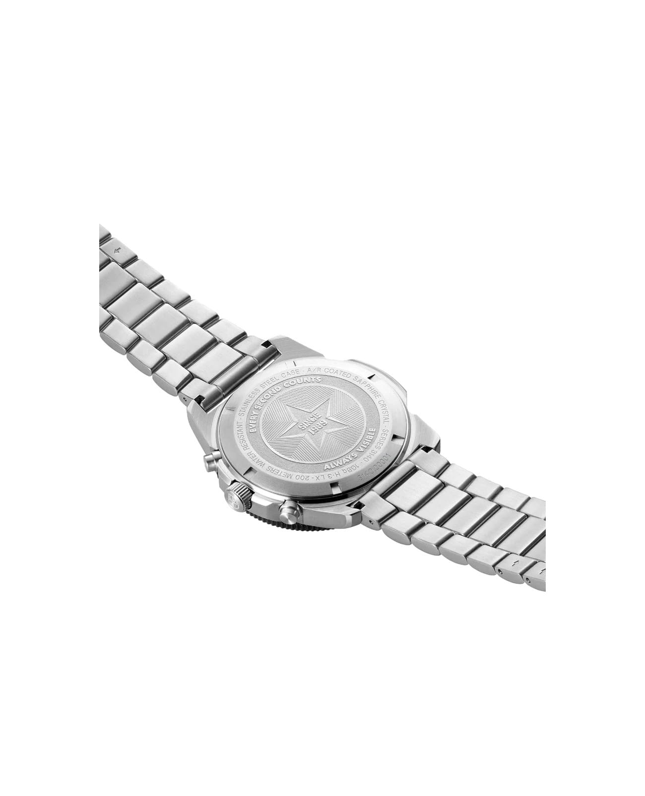 Мужские наручные часы-хронографХронографФункция позволяет измерять отрезки времени с особой точностью: часы, минуты, секунды. Верным признаком хронографа является наличие на циферблате 3 дополнительных окошек-счётчиков. Luminox XS.3144 из коллекции Pacific Diver сочетают в себе спортивный дизайн и надежность швейцарского качества . Модель обладает круглым корпусом диаметром 44 мм, изготовленным из нержавеющей стали с PVD-покрытиемPVDУльтратонкое покрытие наносится в технике вакуумного напыления, сочетает в себе нитрид титана особой прочности со слоем золота или оксида хрома. Несёт в себе декоративную или защитную функцию., что обеспечивает высокую устойчивость к внешним воздействиям и долговечность . Циферблат черного цвета украшен контрастными метками и стрелками с люминесцентным покрытиемЛюминесцентное покрытиеПозволяет считывать показания времени в темноте. Производители наносят на стрелки, часовые индексы, безель или поверхность циферблата светонакопительный состав, дающий холодное свечение., гарантирующим постоянную видимость времени даже в условиях низкой освещенности благодаря системе LLTLLTLLT — это автономный механизм подсветки, основанный на использовании микроскопических газонаполненных элементов. Специальные герметичные капсулы из боросиликатного стекла, интегрированные в циферблат, генерируют свечение без необходимости подключения к внешним источникам энергии. Для их работы не требуется ни дополнительный свет, ни механическое воздействие (например, нажатие кнопки). Свечение возникает благодаря химическому процессу: реакция между тритием, заключенным в капсулах, и люминофорным покрытием создает стабильное автономное освещение. Технология обеспечивает энергетическую независимость и долговечность подсветки. (микрогазовые огни) . Часы оснащены кварцевым механизмом швейцарского производства Ronda 515, обеспечивающим точность хода ±15 секунд в месяц . Защиту циферблата обеспечивает прочное сапфировое стеклоСапфировое стеклоПрочный и надёжный материал из кристалла сапфира синтетического происхождения, характеризующийся особой твёрдостью и устойчивостью к царапинам и повреждениям. с антибликовым покрытиемАнтибликовое покрытиеСлой оксида металла в 0,13-0,3 микрон, благодаря которому стекло часов не бликует и не отражает свет. Антибликовое покрытие уменьшает отражение света в 10 раз, обеспечивая отличную читаемость показателей циферблата., устойчивое к царапинам и механическим повреждениям . Водонепроницаемость модели достигает 20 атмосфер (200 метров), что делает их подходящими для плавания и активного отдыха на воде, включая дайвинг . Модель также оснащена безелемБезельВнешний ободок, закрепляющий стекло. В спортивных часах так называется поворотное кольцо с делениями на циферблате, выполняет роль таймера – замеряет отрезки времени на шкале. Неподвижный безель – элемент декора. Однонаправленно вращающийся безель на дайверских часах позволяет фиксировать моменты погружения и выныривания на поверхность. с односторонним вращением, что добавляет функциональности при использовании в водных условиях . Стальной браслет на раскладной застёжкеРаскладная застёжкаТакой тип застёжки используется только на браслетах из металла. Она никогда не раскрывается полностью, происходит разделение на 2 и более частей.