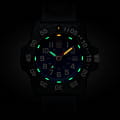 Часы Luminox XS.3503.F — это надежные и стильные швейцарские часы с кварцевым механизмом, оснащенные калибром Ronda 515. Корпус выполнен из пластика, усиленного прессованным карбоном CARBONOX, что обеспечивает прочность и долговечность. Синий циферблат защищен минеральным стекломМинеральное стеклоМинеральное стекло представляет собой искусственно выращенный минерал кварца. Такое стекло отличается особой устойчивостью к повреждениям и царапинам. Уступает по некоторым качествам сапфировому стеклу. повышенной прочности, что делает его устойчивым к царапинам и ударам. Полиуретановый браслет обеспечивает комфортное ношение и надежность фиксации на запястье. Эти часы обладают впечатляющим уровнем водозащиты до 200 метров, что делает их подходящими для водных видов спорта и активного отдыха. Светящаяся метка на безелеБезельВнешний ободок, закрепляющий стекло. В спортивных часах так называется поворотное кольцо с делениями на циферблате, выполняет роль таймера – замеряет отрезки времени на шкале. Неподвижный безель – элемент декора. Однонаправленно вращающийся безель на дайверских часах позволяет фиксировать моменты погружения и выныривания на поверхность., который вращается в одном направлении, добавляет функциональности и удобства, особенно в условиях низкой освещенности. Технология LLTLLTLLT — это автономный механизм подсветки, основанный на использовании микроскопических газонаполненных элементов. Специальные герметичные капсулы из боросиликатного стекла, интегрированные в циферблат, генерируют свечение без необходимости подключения к внешним источникам энергии. Для их работы не требуется ни дополнительный свет, ни механическое воздействие (например, нажатие кнопки). Свечение возникает благодаря химическому процессу: реакция между тритием, заключенным в капсулах, и люминофорным покрытием создает стабильное автономное освещение. Технология обеспечивает энергетическую независимость и долговечность подсветки.-подсветки обеспечивает отличную видимость в темноте на протяжении 25 лет, позволяя контролировать время даже при полном отсутствии света. Часы поддерживают отображение времени в 12- и 24-часовом формате, а наличие календаря с указанием числа добавляет практичности. Заводная головка снабжена защитой и двойной уплотнительной прокладкой для обеспечения герметичности, а задняя крышка крепится на винтах для дополнительной надежности.