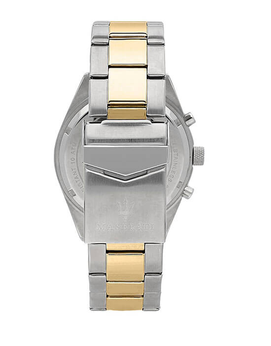Мужские часы с хронографом Maserati COMPETIZIONE R8853100021, кварцевый механизм с высокой точностью. Класс водозащиты: 100 метров, позволит плавать, нырять и заниматься другими водными видами спорта. Корпус часов изготовлен из стали, разноцветного цвета.