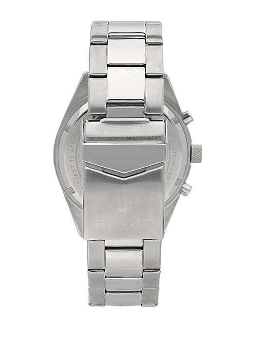 Мужские часы с хронографом Maserati COMPETIZIONE R8853100023, кварцевый механизм с высокой точностью. Класс водозащиты: 100 метров, позволит плавать, нырять и заниматься другими водными видами спорта. Корпус часов изготовлен из стали, серебристого цвета.