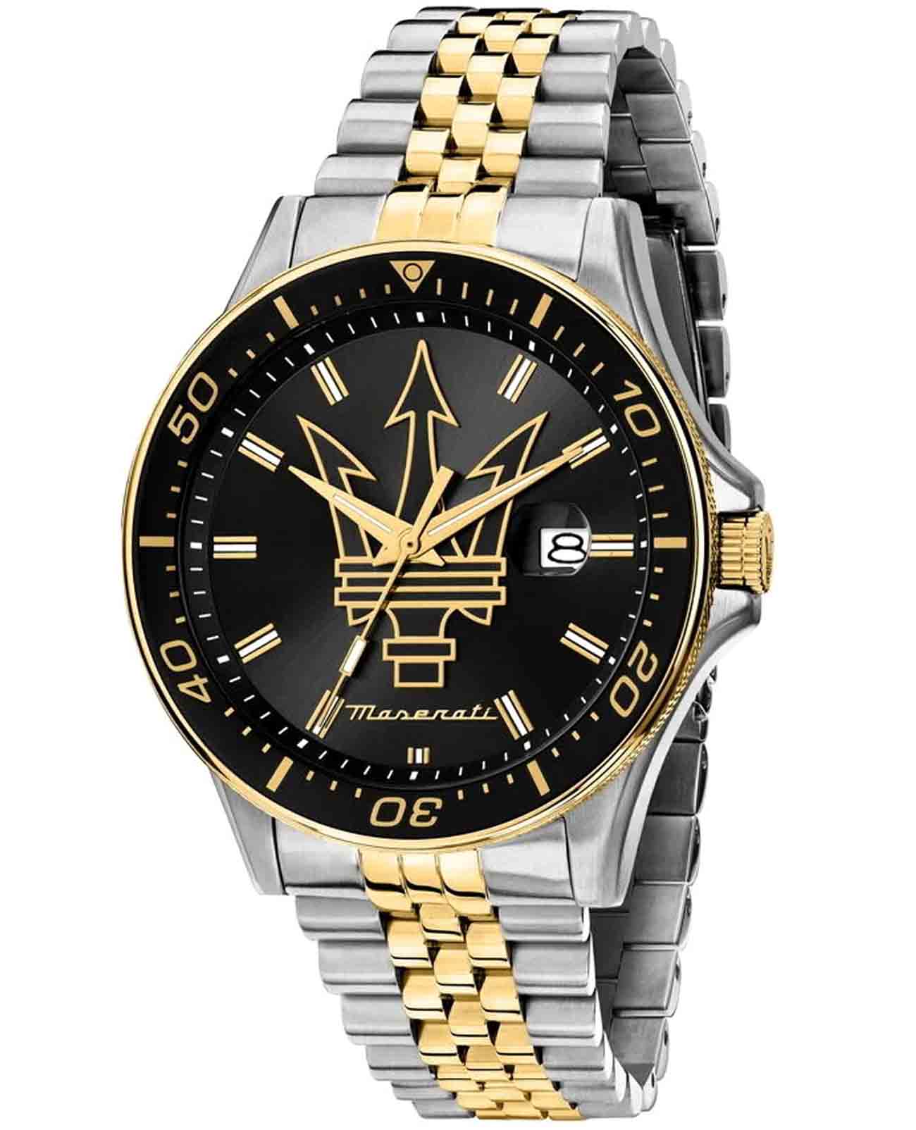 Модель Maserati Sfida R8853140009 — воплощение стиля и функциональности для современных мужчин, ценящих качество и элегантность. Корпус диаметром 44 мм выполнен из нержавеющей стали, обеспечивая прочность и долговечность. Минеральное стеклоМинеральное стеклоМинеральное стекло представляет собой искусственно выращенный минерал кварца. Такое стекло отличается особой устойчивостью к повреждениям и царапинам. Уступает по некоторым качествам сапфировому стеклу. надежно защищает синий циферблат с изящными рисками, придавая часам утонченный вид. Благодаря водостойкости до 100 метров (10 АТМ), эти часы станут вашим надежным спутником в любых условиях, будь то деловая встреча или активный отдых. Люминесцентное покрытиеЛюминесцентное покрытиеПозволяет считывать показания времени в темноте. Производители наносят на стрелки, часовые индексы, безель или поверхность циферблата светонакопительный состав, дающий холодное свечение. на стрелках и метках обеспечивает отличную видимость в темноте. Завершающий штрих — стальной браслет на застёжке-бабочке с кнопкамиЗастёжка "бабочка"Такой вид застёжки дополняется предохранителями, помогающими избежать случайного раскрытия браслета. Обладают изящным исполнением. , который подчеркивает общий стиль, обеспечивая комфорт и надежность в носке. Вращающийся стальной безельБезельВнешний ободок, закрепляющий стекло. В спортивных часах так называется поворотное кольцо с делениями на циферблате, выполняет роль таймера – замеряет отрезки времени на шкале. Неподвижный безель – элемент декора. Однонаправленно вращающийся безель на дайверских часах позволяет фиксировать моменты погружения и выныривания на поверхность. с PVD-покрытиемPVDУльтратонкое покрытие наносится в технике вакуумного напыления, сочетает в себе нитрид титана особой прочности со слоем золота или оксида хрома. Несёт в себе декоративную или защитную функцию.. Циферблат выполнен по технологии Sunray (солнечные лучи) и украшен фирменным логотипом «Maserati». Метки в виде штрихов. Окошко даты с увеличительным стеклом находится в положении 3 часа.