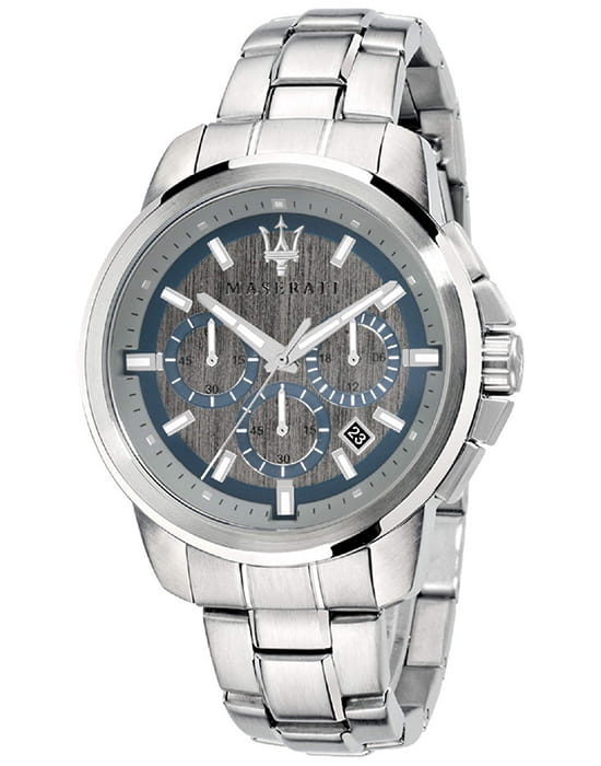 Мужские наручные часы с хронографом Maserati Successo R8873621006, кварцевый механизм с высокой точностью. Класс водозащиты: 50 метров, позволит защитить корпус от случайных брызг или капель дождя. Корпус часов изготовлен из стали, цвета.