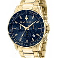 Мужские часы с хронографом Maserati POTENZA R8873640008, кварцевый механизм с высокой точностью. Класс водозащиты: 100 метров, позволит плавать, нырять и заниматься другими водными видами спорта. Корпус часов изготовлен из стали, золотистого цвета.