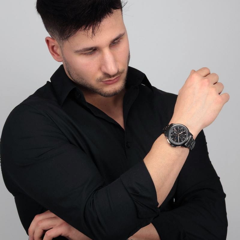 Мужские часы с хронографом Maserati POTENZA R8873645001, кварцевый механизм с высокой точностью. Класс водозащиты: 50 метров, позволит защитить корпус от случайных брызг или капель дождя. Корпус часов изготовлен из стали, черного цвета.