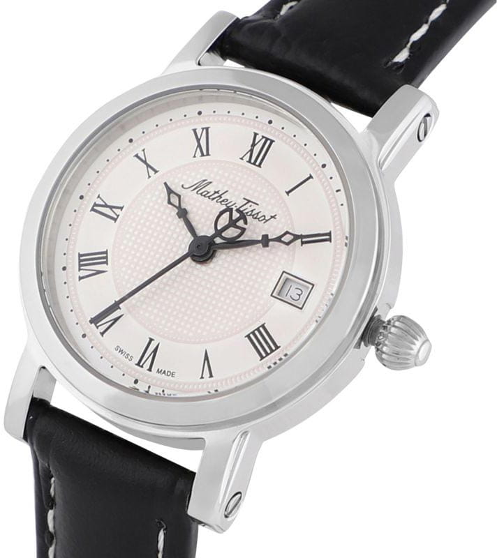 Женские кварцевые часы Mathey-Tissot City Leather D31186ABR— это стильное сочетание элегантности и современного дизайна. Изящный корпус выполнен из нержавеющей стали 316L серебристого цвета, что придаст образу женственности и романтизма. Изысканный циферблат с метками в виде римских цифр придает модели особый блеск. Циферблат защищен минеральным стекломМинеральное стеклоМинеральное стекло представляет собой искусственно выращенный минерал кварца. Такое стекло отличается особой устойчивостью к повреждениям и царапинам. Уступает по некоторым качествам сапфировому стеклу. с сапфировым покрытием, обеспечивающий устойчивость к царапинам. Окошко даты находится в положении 3 часа. Часы оснащены надежным кварцевым механизмом. Кожаный ремень на стандартной застежке, гарантирует комфортное и безопасное ношение. Класс водозащиты: 50 метров позволит защитить корпус от случайных брызг или капель дождя. Mathey-Tissot  — отличный выбор для тех, кто ценит утонченность и качество.