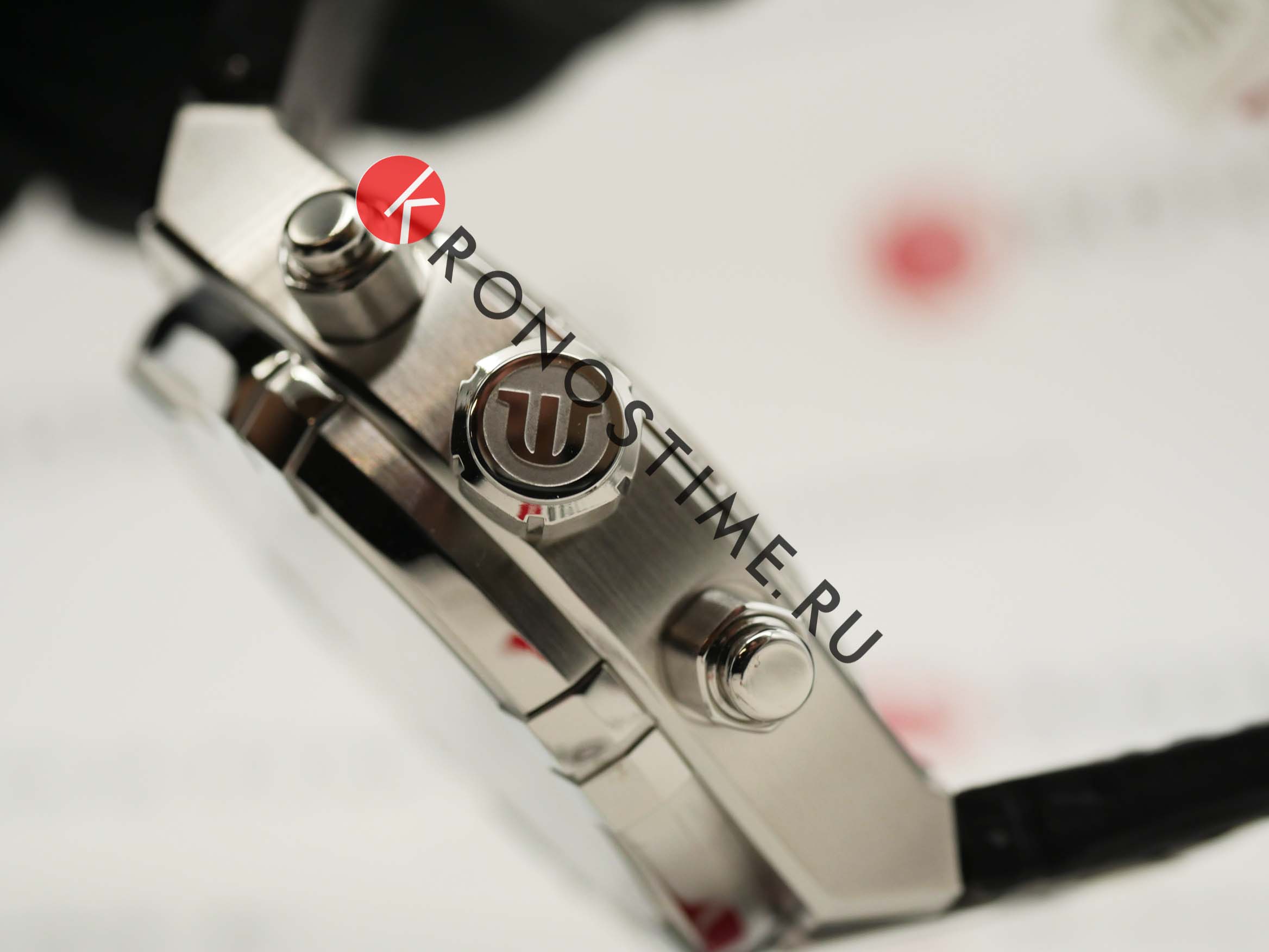 Мужские швейцарские механические часы с хронографом Maurice Lacroix Aikon Automatic Chronograph AI6038-SS001-330-1, механический механизм (автоматический калибр) с высокой точностью. Сапфировое стеклоСапфировое стеклоПрочный и надёжный материал из кристалла сапфира синтетического происхождения, характеризующийся особой твёрдостью и устойчивостью к царапинам и повреждениям. устойчивое к появлению царапин, обладающее высокой прозрачностью. Класс водозащиты: 200 метров, позволит плавать, нырять и заниматься другими водными видами спорта. Корпус и браслет часов изготовлены из нержавеющей стали. На циферблате расположены три дополнительных индикатора, окошко даты в положении 3 часов. Стрелки с люминесцентным покрытиемЛюминесцентное покрытиеПозволяет считывать показания времени в темноте. Производители наносят на стрелки, часовые индексы, безель или поверхность циферблата светонакопительный состав, дающий холодное свечение.. Кожаный браслет c раскладной застёжкойРаскладная застёжкаТакой тип застёжки используется только на браслетах из металла. Она никогда не раскрывается полностью, происходит разделение на 2 и более частей. Раскладывающая застёжка снизит вероятность потери часов к минимуму..