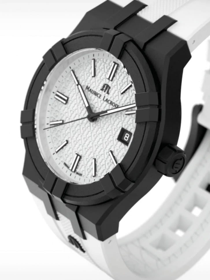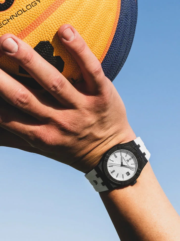 Новое специальное издание AIKON #tide FIBA3x3, наполненное энергией. Эти часы с баскетбольной тематикой, помещенные в 40-миллиметровый корпус, оснащены плоским сапфировым стеклом, улучшающим читаемость, а кварцевый механизм обеспечивает точность в мире, где секунды на счету. Эти две модели, идеально подходящие для придворных, выпускаются с черными или белыми циферблатами и поставляются на координирующих ремешках. На циферблатах нанесен логотип "3x3", выполненный в виде замысловатого мотива, а на задней крышке корпуса также выбит логотип ‘3x3’. Мужские швейцарские кварцевые часы Maurice Lacroix Aikon Tide Special Edition FIBA 3x3 AI2008-00YZ1-000-0. Сапфировое стеклоСапфировое стеклоПрочный и надёжный материал из кристалла сапфира синтетического происхождения, характеризующийся особой твёрдостью и устойчивостью к царапинам и повреждениям. устойчивое к появлению царапин, обладающее высокой прозрачностью. Белый циферблат. Стрелки и метки с люминесцентным покрытиемЛюминесцентное покрытиеПозволяет считывать показания времени в темноте. Производители наносят на стрелки, часовые индексы, безель или поверхность циферблата светонакопительный состав, дающий холодное свечение.. Класс водозащиты: 100 метров, позволит плавать, нырять и заниматься другими водными видами спорта. Окошко даты находится в положении 3 часов. Корпус выполнен из переработанного пластика, ранее загрязнявшего Мировой океан. Каучуковый ремешок с классической застежкой.