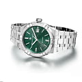 Зелёный циферблат с фирменным узором "Clous de Paris" дополнен серебристыми метками и стрелками с люминесцентным покрытиемЛюминесцентное покрытиеПозволяет считывать показания времени в темноте. Производители наносят на стрелки, часовые индексы, безель или поверхность циферблата светонакопительный состав, дающий холодное свечение., обеспечивающим отличную видимость в условиях низкой освещённости.