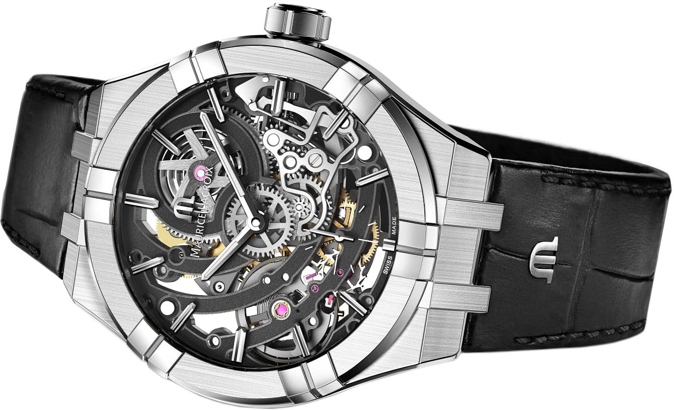 В духе современного творчества Maurice Lacroix воплотил в AIKON Automatic Skeleton множество новых функций. В широком корпусе AIKON, измененном для размещения механизма нового типа, Maurice Lacroix впервые выпускает мануфактурный калибр ML234. Они выполнены в ажурном стиле по совершенно новому образцу, специально разработанному для этих часов. Модель AIKON Automatic Skeleton, расположенная на стыке двух модельных рядов Maurice Lacroix, сочетает в себе элементы дизайна AIKON и часового мастерства, характерные для коллекции Masterpiece.