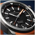 Мужские швейцарские часы Maurice Lacroix Pontos S Diver PT6248-SS00L-330-J, механический механизм (автоматический калибр) с высокой точностью. Сапфировое стеклоСапфировое стеклоПрочный и надёжный материал из кристалла сапфира синтетического происхождения, характеризующийся особой твёрдостью и устойчивостью к царапинам и повреждениям. устойчивое к появлению царапин, обладающее высокой прозрачностью. Корпус изготовлен из нержавеющей стали. Стрелки с люминесцентным покрытиемЛюминесцентное покрытиеПозволяет считывать показания времени в темноте. Производители наносят на стрелки, часовые индексы, безель или поверхность циферблата светонакопительный состав, дающий холодное свечение..Класс водозащиты: 300 метров, позволит плавать, нырять и заниматься другими водными видами спорта. Стальной браслет на застёжке-бабочке с кнопкамиЗастёжка "бабочка"Такой вид застёжки дополняется предохранителями, помогающими избежать случайного раскрытия браслета. Обладают изящным исполнением. . Циферблат обрамляет черный внутренний безель. Каучуковый ремешок на стандартной застёжке.Черный циферблат с зернистой текстурой оснащен индексами в виде жезлов в серебряной оправе, а также серебряными часовой, минутной и секундной стрелками с оранжевыми деталями.