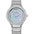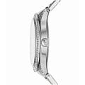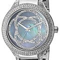 Женские американские часы Michael Kors Kerry MK3480, кварцевый механизм с высокой точностью. Минеральное стеклоМинеральное стеклоМинеральное стекло представляет собой искусственно выращенный минерал кварца. Такое стекло отличается особой устойчивостью к повреждениям и царапинам. Уступает по некоторым качествам сапфировому стеклу., устойчивое к мелким механическим повреждениям. Корпус часов выполнен из нержавеющей стали. БезельБезельВнешний ободок, закрепляющий стекло. В спортивных часах так называется поворотное кольцо с делениями на циферблате, выполняет роль таймера – замеряет отрезки времени на шкале. Неподвижный безель – элемент декора. Однонаправленно вращающийся безель на дайверских часах позволяет фиксировать моменты погружения и выныривания на поверхность. и циферблат украшены кристаллами. Класс водозащиты: 50 метров, позволит защитить корпус от случайных брызг или капель дождя. Стальной браслет частично украшен кристаллами на раскладной застёжкеРаскладная застёжкаТакой тип застёжки используется только на браслетах из металла. Она никогда не раскрывается полностью, происходит разделение на 2 и более частей. Раскладывающая застёжка снизит вероятность потери часов к минимуму..