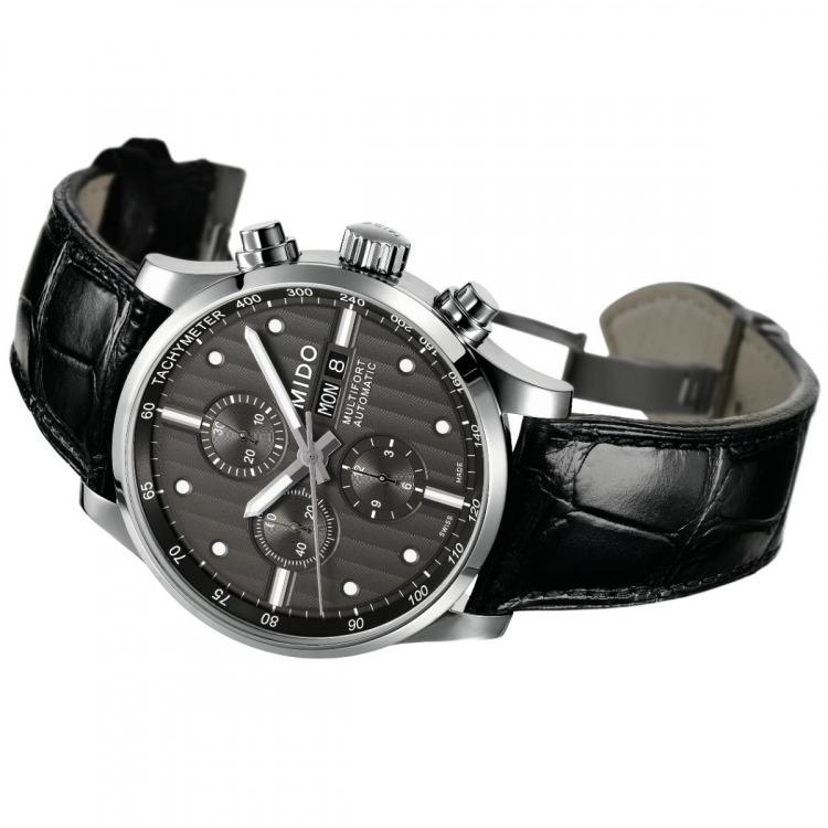 Мужские швейцарские механические часы-хронографХронографФункция позволяет измерять отрезки времени с особой точностью: часы, минуты, секунды. Верным признаком хронографа является наличие на циферблате 3 дополнительных окошек-счётчиков. Mido Multifort Chronograph M005.614.16.061.00, механический механизм (автоматический калибр) с высокой точностью. Сапфировое стеклоСапфировое стеклоПрочный и надёжный материал из кристалла сапфира синтетического происхождения, характеризующийся особой твёрдостью и устойчивостью к царапинам и повреждениям. устойчивое к появлению царапин, обладающее высокой прозрачностью. Класс водозащиты: 100 метров, позволит плавать, нырять и заниматься другими водными видами спорта. Корпус часов изготовлен из стали.