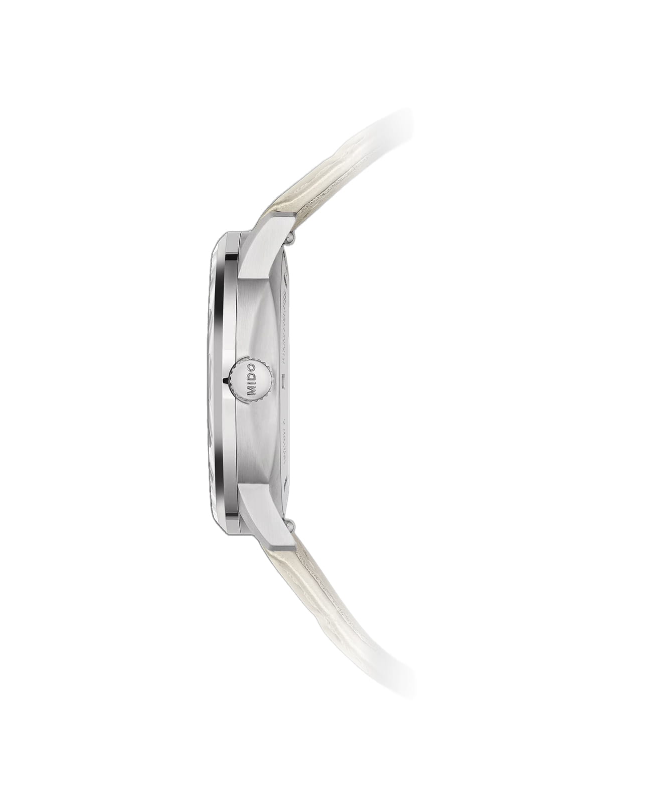 Изысканные и неброские, новые швейцарские механические часы для женщин Mido Commander Lady M021.207.16.296.00, механический механизм (автоматический калибр) с высокой точностью. Сапфировое стеклоСапфировое стеклоПрочный и надёжный материал из кристалла сапфира синтетического происхождения, характеризующийся особой твёрдостью и устойчивостью к царапинам и повреждениям. устойчивое к появлению царапин, обладающее высокой прозрачностью. Идеальный круглый корпус, открывающийся на циферблат, тонкий безель и неброская заводная головка, традиционные стрелки и индексы, превосходный швейцарский автоматический калибр с высокотехнологичной балансировочной пружиной: Commander поражает в этой женской версии. Циферблат украшают метки с бриллиантами. Стрелки с люминесцентным покрытиемЛюминесцентное покрытиеПозволяет считывать показания времени в темноте. Производители наносят на стрелки, часовые индексы, безель или поверхность циферблата светонакопительный состав, дающий холодное свечение.. Окошко даты в положении 3 часов. Класс водозащиты: 50 метров, позволит защитить корпус от случайных брызг или капель дождя. Кожаный ремешок на стандартной застежке.