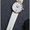 Стильная модель для прекрасной половины. Циферблат украшен натуральным перламутром, бриллианты вместо меток играют на свету. Механический механизм (автоматический калибр) с высокой точностью. Сапфировое стеклоСапфировое стеклоПрочный и надёжный материал из кристалла сапфира синтетического происхождения, характеризующийся особой твёрдостью и устойчивостью к царапинам и повреждениям. устойчивое к появлению царапин, обладающее высокой прозрачностью. Класс водозащиты: 50 метров, позволит защитить корпус от случайных брызг или капель дождя. Корпус часов изготовлен из нержавеющей стали с PVD-покрытиемPVDУльтратонкое покрытие наносится в технике вакуумного напыления, сочетает в себе нитрид титана особой прочности со слоем золота или оксида хрома. Несёт в себе декоративную или защитную функцию.. Кожаный ремешок с застёжкой «бабочка» с кнопкамиЗастёжка "бабочка"Такой вид застёжки дополняется предохранителями, помогающими избежать случайного раскрытия браслета. Обладают изящным исполнением. .