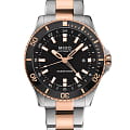 Браслет из нержавеющей стали с PVD-покрытиемPVDУльтратонкое покрытие наносится в технике вакуумного напыления, сочетает в себе нитрид титана особой прочности со слоем золота или оксида хрома. Несёт в себе декоративную или защитную функцию. розового золота и раскладывающейся застёжкойРаскладная застёжкаТакой тип застёжки используется только на браслетах из металла. Она никогда не раскрывается полностью, происходит разделение на 2 и более частей. Раскладывающая застёжка снизит вероятность потери часов к минимуму. с удлинителем для дайвинга обеспечивает комфортное ношение.
