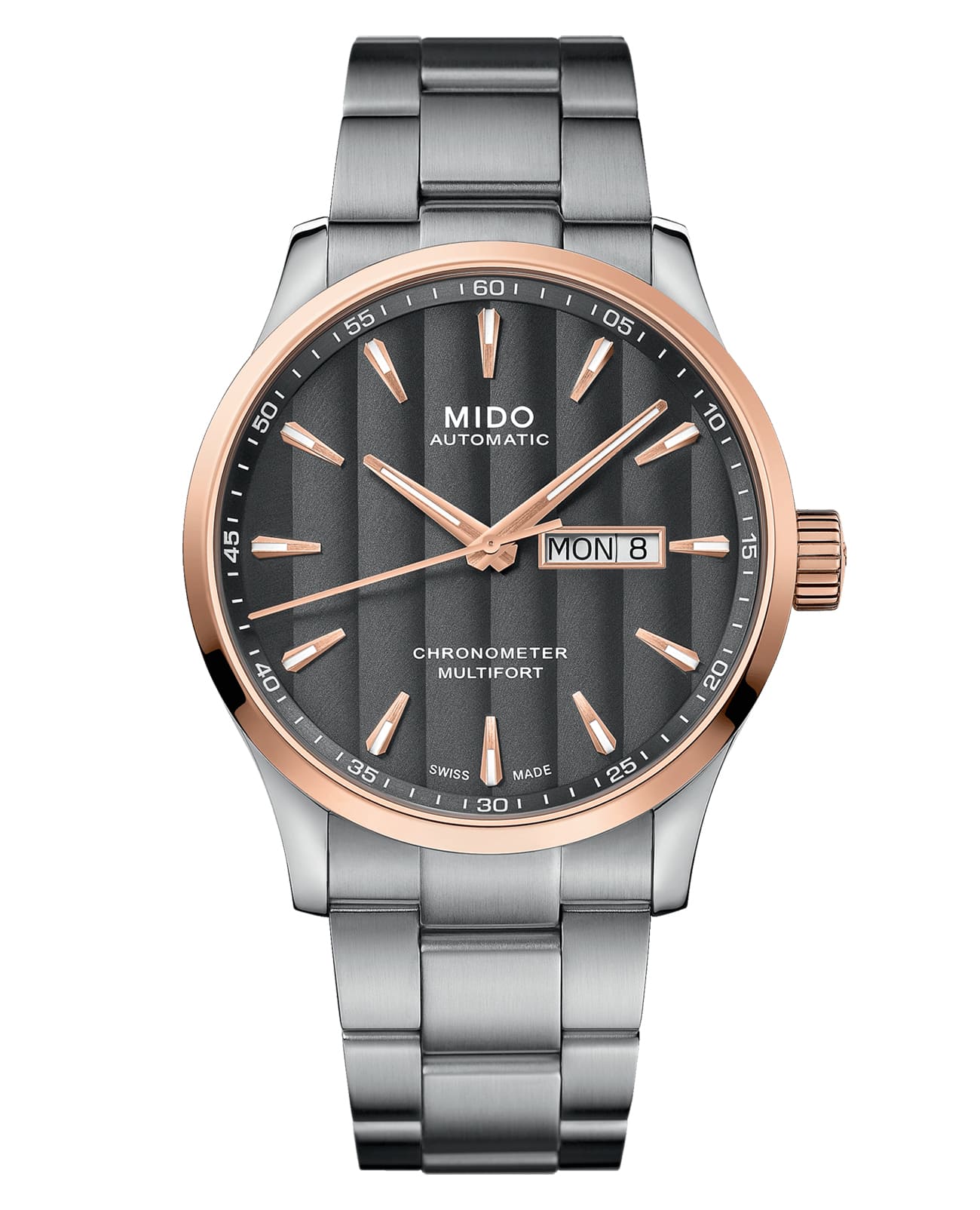 Мужские швейцарские механические часы с хронометром Mido Multifort Chronometer 1 M038.431.21.061.00, механический механизм (автоматический калибр) с высокой точностью. Сапфировое стекло устойчивое к появлению царапин, обладающее высокой прозрачностью. Класс водозащиты: 100 метров, позволит плавать, нырять и заниматься другими водными видами спорта. Корпус часов изготовлен из стали, комбинированного цвета. Невероятно точные и прочные часы украшены характерным для коллекции узором «Женевские полосы». Градуированный безель и часовые метки и стрелки с сатинированной отделкой придают им еще более изысканный вид. Необычную заднюю крышку корпуса дополняет интегрированный фланец с гравировкой.