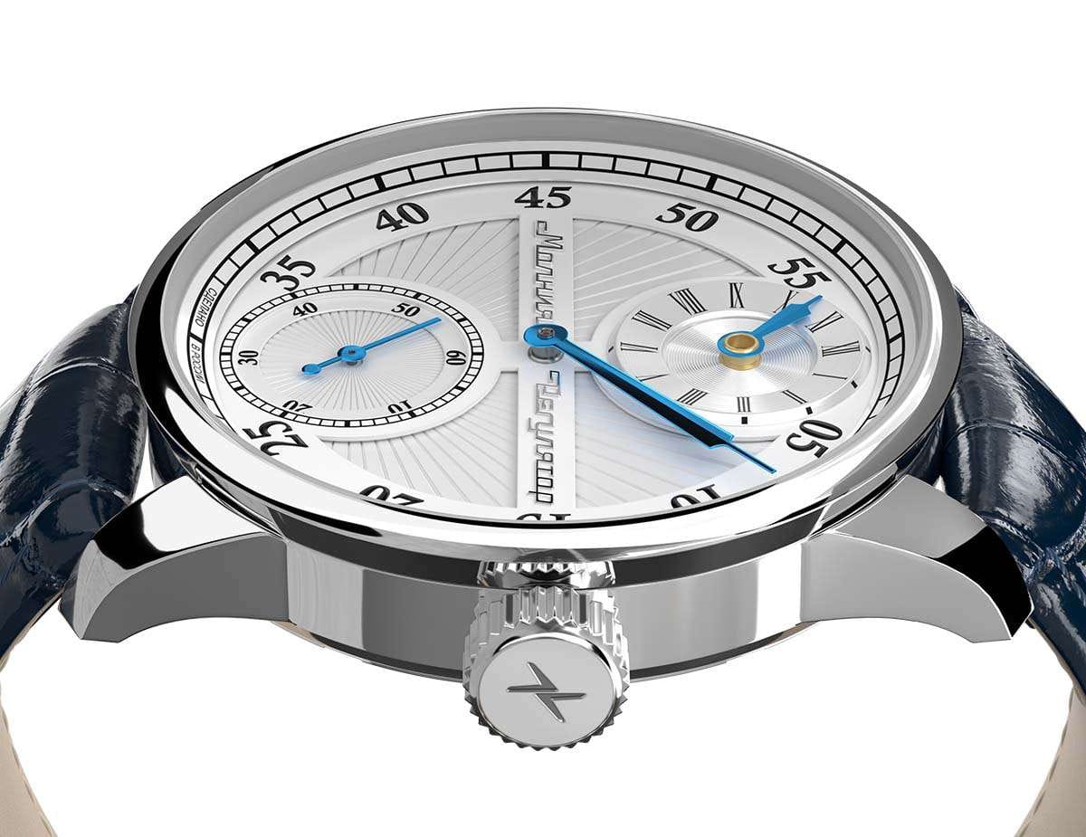 Мужские механические часы с ручным подзаводом — это аксессуар от легендарного бренда «МОЛНИЯ», созданный на Челябинском часовом заводе. Корпус диаметром 42 мм выполнен из нержавеющей стали. Циферблат оформлен индексами и стрелками. Малая секундная стрелка вынесена на отдельный субциферблат. Циферблат защищён сапфировым стекломСапфировое стеклоПрочный и надёжный материал из кристалла сапфира синтетического происхождения, характеризующийся особой твёрдостью и устойчивостью к царапинам и повреждениям.. Механизм — мануфактурный калибр 3603RS, полностью собранный вручную, с декорированными деталями, которые видны через прозрачную заднюю крышку. Часы оснащены кожаным ремешком синего цвета с раскладной застёжкойРаскладная застёжкаТакой тип застёжки используется только на браслетах из металла. Она никогда не раскрывается полностью, происходит разделение на 2 и более частей. Раскладывающая застёжка снизит вероятность потери часов к минимуму.. Водонепроницаемость 100 м позволяет использовать часы для плавания и повседневного ношения. Идеальный выбор для тех, кто ценит российское качество и традиции.