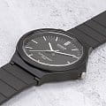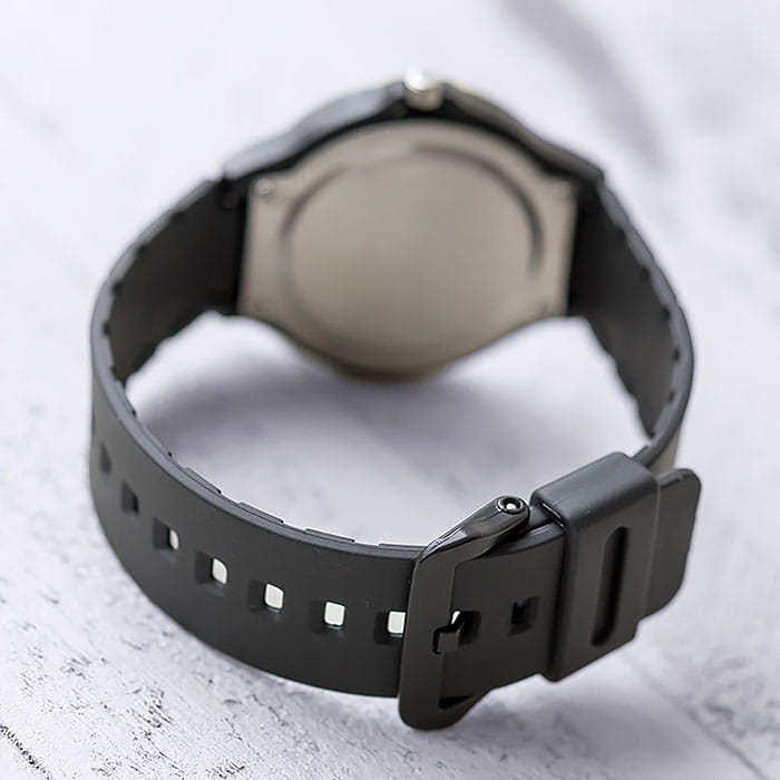 Мужские кварцевые часы Центральные часовая, минутная и секундная стрелки Светящееся покрытие обеспечивает длительную подсветку в темное время суток после короткого воздействия света Черный циферблат Круглый корпус выполнен из черного полимерного пластика Размер корпуса составляет 48x44x10 мм Браслет из черного полимерного материала с классической пряжкой Пластиковое стекло Водостойкость WR 50 (мытье рук, дождь) Вес 35 г