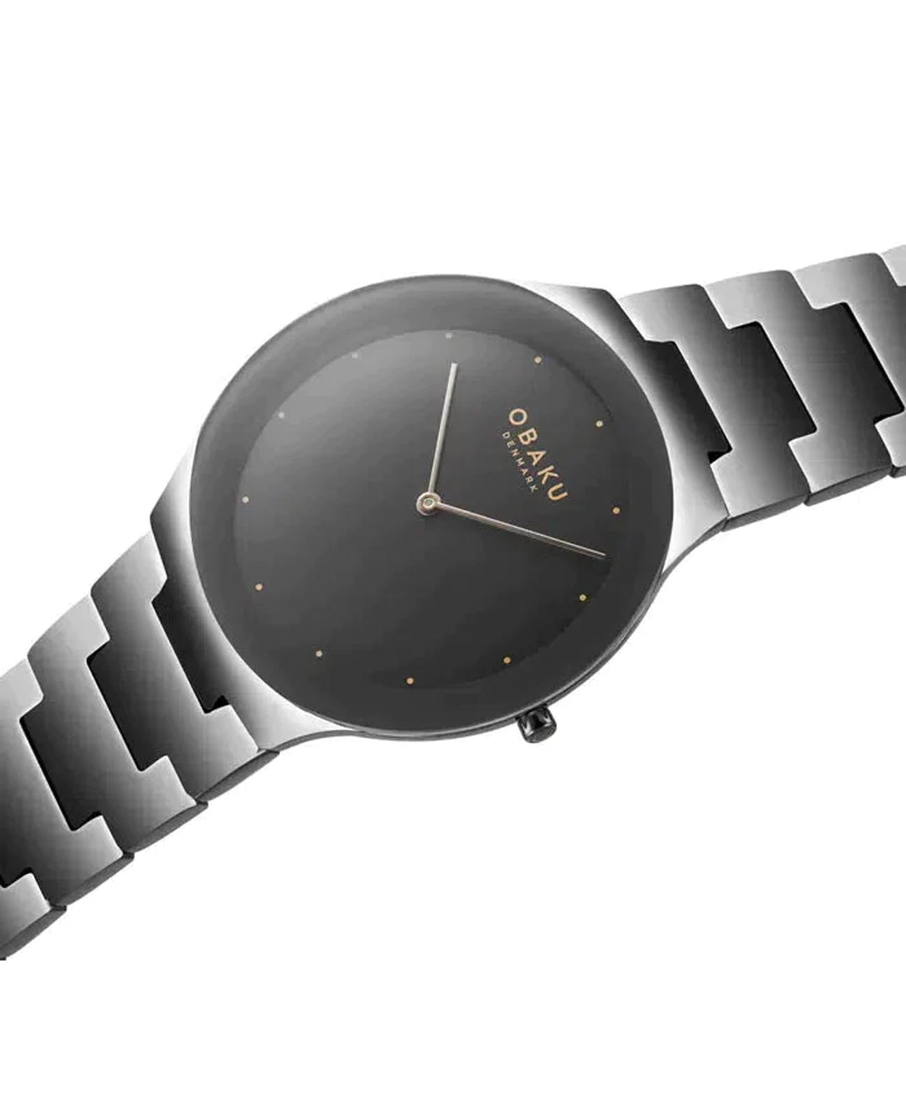 Женские датские наручные часы с сапфировым стекломСапфировое стеклоПрочный и надёжный материал из кристалла сапфира синтетического происхождения, характеризующийся особой твёрдостью и устойчивостью к царапинам и повреждениям. Obaku Links V290GXUUSU, кварцевый механизм с высокой точностью. Класс водозащиты: 30 метров, позволит защитить корпус от случайных брызг или капель дождя. Корпус часов изготовлен из стали с IP-покрытиемIP-покрытиеМетод ионного напыления. Демонстрирует повышенную устойчивость к истиранию, окислению и химическим веществам. Под воздействием высокого давления и температуры около 1500°C молекулы металла надёжно соединяются с частицами корпуса часов.. Стальной браслет на раскладной застёжкеРаскладная застёжкаТакой тип застёжки используется только на браслетах из металла. Она никогда не раскрывается полностью, происходит разделение на 2 и более частей. Раскладывающая застёжка снизит вероятность потери часов к минимуму. с IP-покрытиемIP-покрытиеМетод ионного напыления. Демонстрирует повышенную устойчивость к истиранию, окислению и химическим веществам. Под воздействием высокого давления и температуры около 1500°C молекулы металла надёжно соединяются с частицами корпуса часов.. Циферблат инкрустирован кристаллами.