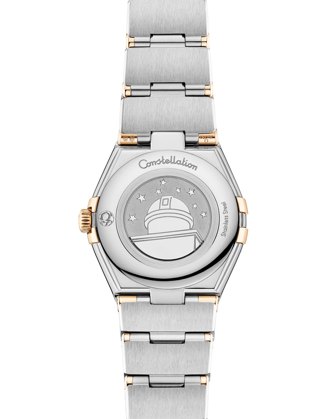 Легендарные часы OMEGA Constellation воплощают космическую элегантность в своем узнаваемом корпусе с плавными полукруглыми гранями и зеркальными скобами, напоминающими отблески далеких звезд. Эта изысканная 25-миллиметровая модель из нержавеющей стали и 18-каратного золота18-каратное золотоОбозначение по каратной системе пробирования, оно показывает, сколько драгоценного металла содержится в изделии. 18 карат - в составе 75% чистого золота, соответствует 750 пробе.