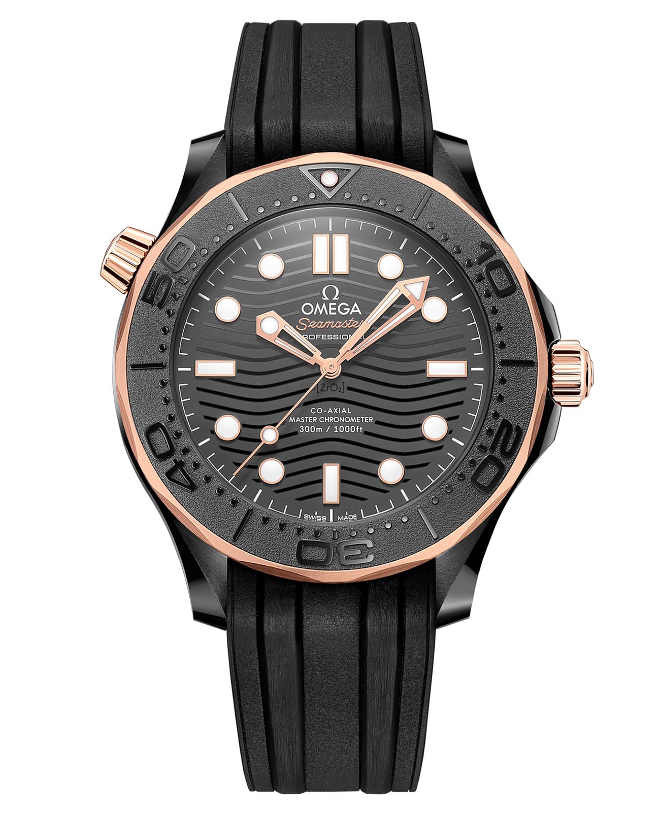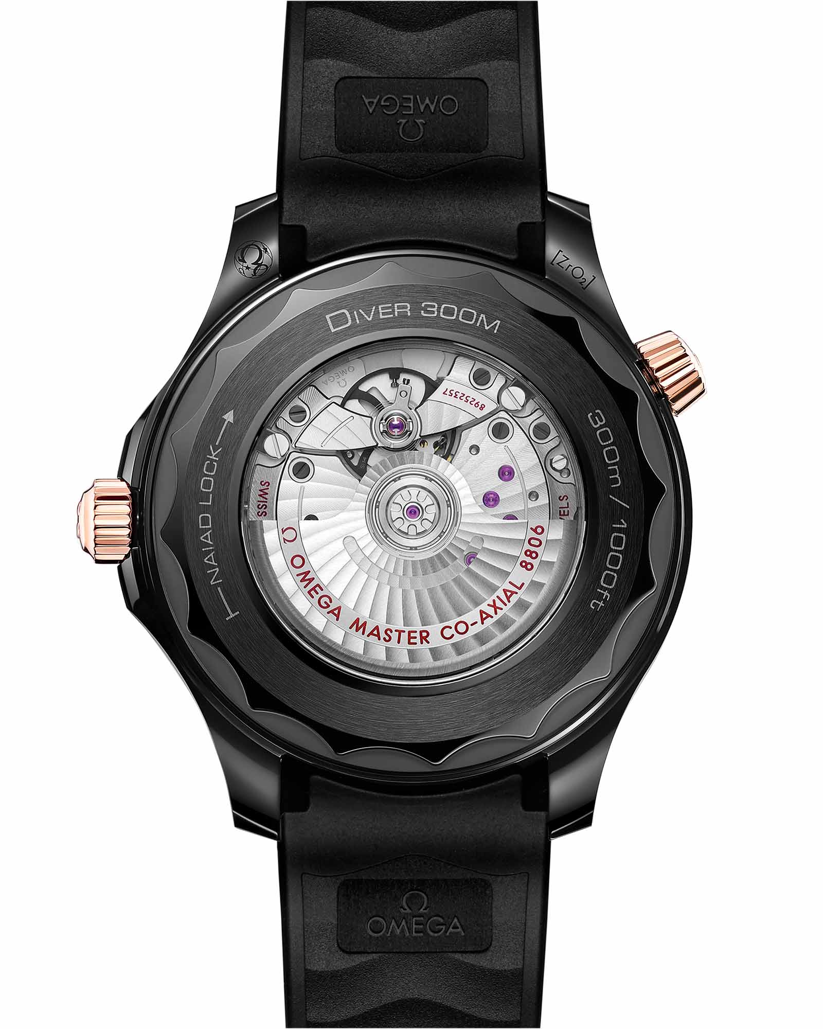 и граненые стрелки, заполненные белым покрытием Super-LumiNovaЛюминесцентное покрытиеПозволяет считывать показания времени в темноте. Производители наносят на стрелки, часовые индексы, безель или поверхность циферблата светонакопительный состав, дающий холодное свечение., восхитительно контрастируют на фоне черного циферблата. Изделие дополнено интегрированным каучуковым ремешком и керамической застежкой черного цвета. Задняя крышка с волнистым краем и полированной и матовой поверхностью защищена запатентованной компанией OMEGA системой NAIAD LOCK. Часы оснащены калибром Omega Co-Axial Master Chronometer 8806.