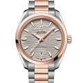Omega Seamaster Aqua Terra выполнены в симметричном корпусе из нержавеющей стали и 18K Sedna™ золота с завинчивающейся задней крышкой, украшенной волновым узором. Циферблат украшен гильошированием "морские волны" и дополнен окошком даты на 6 часах. Стрелки и метки оснащены люминесцентным покрытиемЛюминесцентное покрытиеПозволяет считывать показания времени в темноте. Производители наносят на стрелки, часовые индексы, безель или поверхность циферблата светонакопительный состав, дающий холодное свечение. Super-LumiNova для лучшей читаемости в темноте. Калибр Omega 8800 сертифицирован как Master Chronometer — гарантия высочайшей точности и устойчивости к магнитным полям. Запас хода составляет 55 часов. Защиту циферблата обеспечивает сапфировое стеклоСапфировое стеклоПрочный и надёжный материал из кристалла сапфира синтетического происхождения, характеризующийся особой твёрдостью и устойчивостью к царапинам и повреждениям. с антибликовым покрытиемАнтибликовое покрытиеСлой оксида металла в 0,13-0,3 микрон, благодаря которому стекло часов не бликует и не отражает свет. Антибликовое покрытие уменьшает отражение света в 10 раз, обеспечивая отличную читаемость показателей циферблата.. Водозащита позволяет использовать часы в воде без риска повреждения. Часы установлены на комбинированный браслет из 18K Sedna™ золота и нержавеющей стали с застёжка «бабочка» с кнопкамиЗастёжка "бабочка"Такой вид застёжки дополняется предохранителями, помогающими избежать случайного раскрытия браслета. Обладают изящным исполнением. . Это сочетание премиального качества, технологичности и классического дизайна.