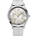 с PVD-покрытиемPVDУльтратонкое покрытие наносится в технике вакуумного напыления, сочетает в себе нитрид титана особой прочности со слоем золота или оксида хрома. Несёт в себе декоративную или защитную функцию. создают игру света и тени. Плетеный браслет из стали с шелковистым рельефом подчеркивает изысканность, а зеркальная крышка с узором "Her Time" скрывает точный кварцевый механизм OMEGA 4061 — воплощение часового искусства.