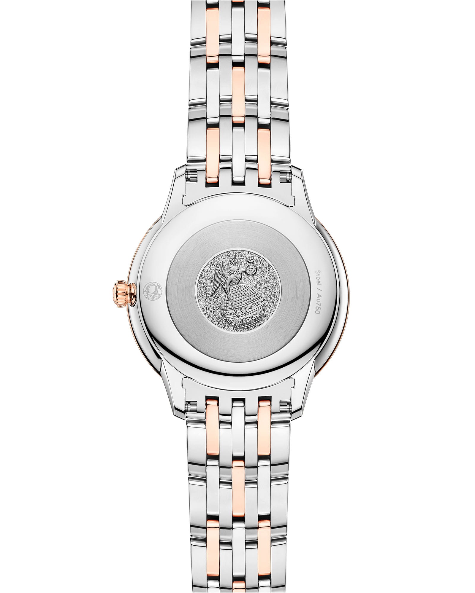 Третье переосмысление легендарной коллекции OMEGA De Ville Prestige, сохраняющей свою актуальность с 1994 года, являет собой гармонию традиционного часового искусства и современного дизайна. Эти часы, ставшие воплощением вневременной элегантности, предлагают изысканные решения для истинных ценителей прекрасного. 30-миллиметровый корпус из нержавеющей стали и 18-каратного золота18-каратное золотоОбозначение по каратной системе пробирования, оно показывает, сколько драгоценного металла содержится в изделии. 18 карат - в составе 75% чистого золота, соответствует 750 пробе.