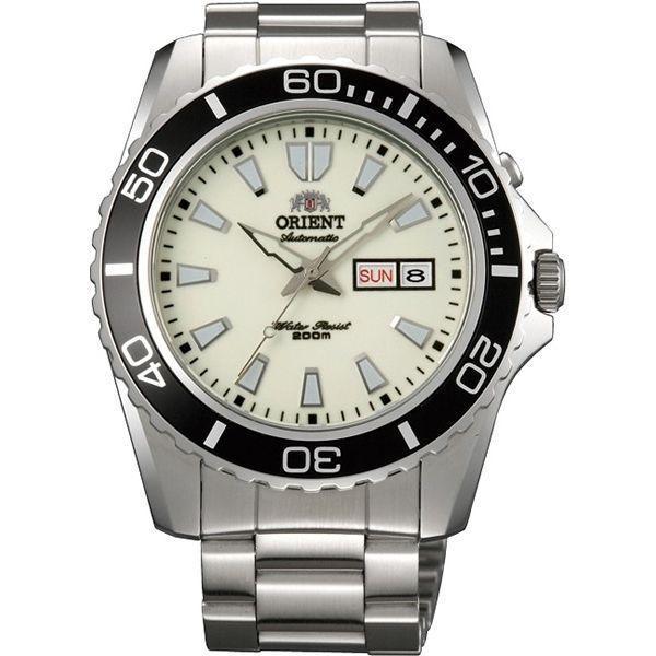 Светлый циферблат с крупной индикацией времени не имеет лишних деталей. Японский автоматический калибр Orient 46943 имеет запас хода на 40 часов. Завинчивающаяся задняя крышка и заводная головка усиливают водостойкость в 200 метров. люминесцентная подсветкаЛюминесцентное покрытиеПозволяет считывать показания времени в темноте. Производители наносят на стрелки, часовые индексы, безель или поверхность циферблата светонакопительный состав, дающий холодное свечение. позволяет просматривать время и в темноте. На позиции 3 часов – окошко даты и дня недели.