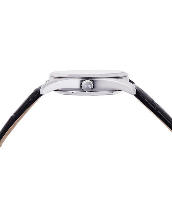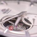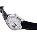 Сквозь прозрачное окошко на циферблате можно наблюдать за работой механизма часов, что добавляет часам дополнительную привлекательность. Секундная стрелка вынесена на отдельный циферблат, подчеркивая внимание к деталям и создавая гармоничный баланс между функциональностью и стилем.