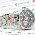 Мужские японские механические часы Orient Star RE-AV0004N представляют собой воплощение истинного мастерства и безупречного стиля. Они оснащены сапфировым стекломСапфировое стеклоПрочный и надёжный материал из кристалла сапфира синтетического происхождения, характеризующийся особой твёрдостью и устойчивостью к царапинам и повреждениям., которое отличается высокой устойчивостью к царапинам и гарантирует чёткую видимость циферблата в любых условиях. Корпус часов выполнен из прочной нержавеющей стали, что придаёт им надёжность и долговечность. Заводная головка имеет аккуратную рифлёную поверхность, облегчающую регулировку времени и даты. Задняя крышка корпуса выполнена прозрачной, позволяя насладиться красотой работающего механизма. Циферблат, созданный по технологии Sunray («солнечные лучи»), излучает мягкое сияние, плавно переходящее от центра к краям. Метки представлены тонкими штрихами и двумя крупными римскими цифрами, расположенными на позициях «VI» и «XII», что придаёт часам классический и элегантный вид. Стрелки покрыты люминесцентным составомЛюминесцентное покрытиеПозволяет считывать показания времени в темноте. Производители наносят на стрелки, часовые индексы, безель или поверхность циферблата светонакопительный состав, дающий холодное свечение., который обеспечивает отличное считывание времени даже в тёмных условиях. Стальной браслет, соединённый с корпусом, оборудован раскладной застёжкойРаскладная застёжкаТакой тип застёжки используется только на браслетах из металла. Она никогда не раскрывается полностью, происходит разделение на 2 и более частей. Раскладывающая застёжка снизит вероятность потери часов к минимуму., гарантируя комфортное ношение и надёжную фиксацию на запястье. Водонепроницаемость часов достигает уровня 100 метров, что позволяет использовать их во время плавания, занятий дайвингом и других активных водных мероприятий без риска повреждения. Эти часы сочетают в себе традиционное японское качество, современный дизайн и высокую функциональность, делая их отличным выбором для мужчин, ценящих точность, стиль и надёжность.
