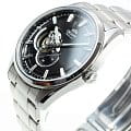 Чёрный циферблат с люминесцентными стрелками и меткамиЛюминесцентное покрытиеПозволяет считывать показания времени в темноте. Производители наносят на стрелки, часовые индексы, безель или поверхность циферблата светонакопительный состав, дающий холодное свечение. гарантирует отличную читаемость в любых условиях. Полу-скелетонный дизайн с окошком на отметке «9 часов» добавляет изысканности, позволяя наблюдать за работой механизма.