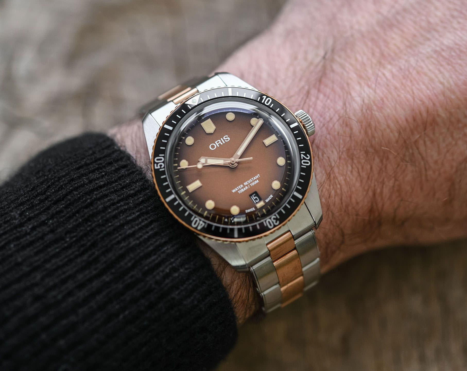 Многокомпонентный бронзовый корпус, вращающийся бронзовый безельБезельВнешний ободок, закрепляющий стекло. В спортивных часах так называется поворотное кольцо с делениями на циферблате, выполняет роль таймера – замеряет отрезки времени на шкале. Неподвижный безель – элемент декора. Однонаправленно вращающийся безель на дайверских часах позволяет фиксировать моменты погружения и выныривания на поверхность. с минутной шкалой . Сапфировое стеклоСапфировое стеклоПрочный и надёжный материал из кристалла сапфира синтетического происхождения, характеризующийся особой твёрдостью и устойчивостью к царапинам и повреждениям., выпуклое с обеих сторон, внутреннее антибликовое покрытие. Прозрачная задняя крышка из сапфирового стеклаСапфировое стеклоПрочный и надёжный материал из кристалла сапфира синтетического происхождения, характеризующийся особой твёрдостью и устойчивостью к царапинам и повреждениям.. Стрелки и метки с люминесцентным покрытиемЛюминесцентное покрытиеПозволяет считывать показания времени в темноте. Производители наносят на стрелки, часовые индексы, безель или поверхность циферблата светонакопительный состав, дающий холодное свечение.. Завинчивающаяся заводная головка.