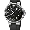 Компания Oris оснастила универсальную модель Aquis Date 36,50 мм спортивным, но элегантным корпусом из нержавеющей стали, надежным автоматическим механизмом Swiss Made, водонепроницаемостью до 30 бар (300 метров) и сменными ремешками. Результат? Прекрасные высокопроизводительные часы.