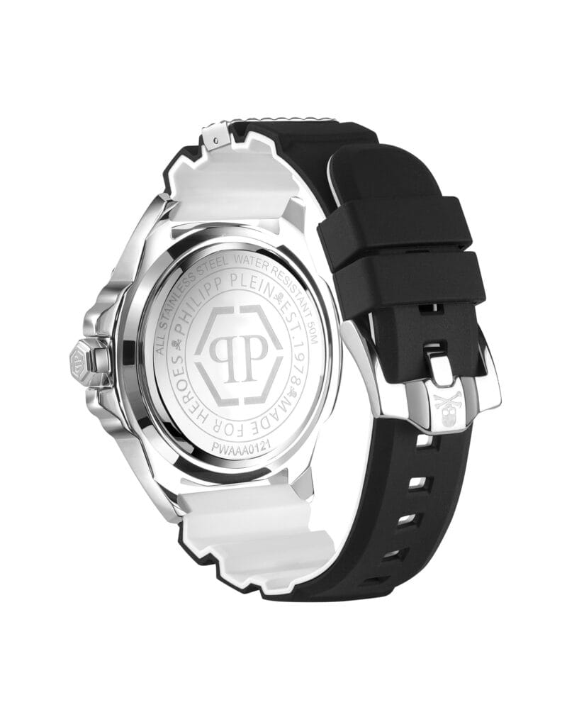 Яркие мужские часы с минеральным стекломМинеральное стеклоМинеральное стекло представляет собой искусственно выращенный минерал кварца. Такое стекло отличается особой устойчивостью к повреждениям и царапинам. Уступает по некоторым качествам сапфировому стеклу. Philipp Plein The Skull PWAAA0121, кварцевый механизм с высокой точностью. Класс водозащиты: 50 метров, позволит защитить корпус от случайных брызг или капель дождя. Корпус часов изготовлен из стали.