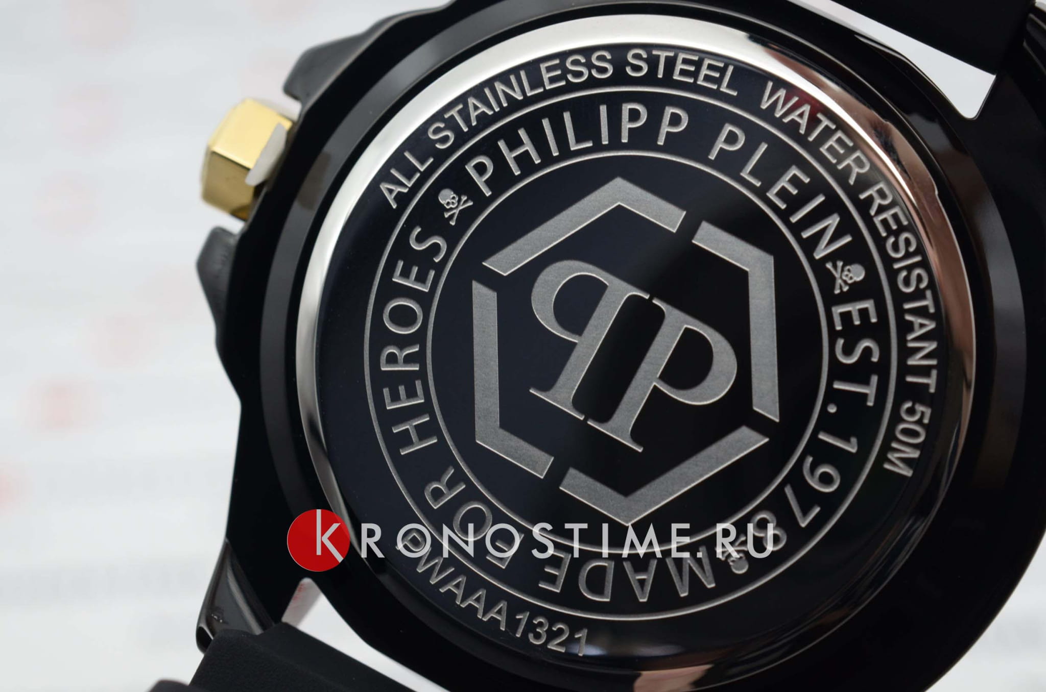 Яркие мужские часы с минеральным стекломМинеральное стеклоМинеральное стекло представляет собой искусственно выращенный минерал кварца. Такое стекло отличается особой устойчивостью к повреждениям и царапинам. Уступает по некоторым качествам сапфировому стеклу. Philipp Plein The Skull PWAAA1321, кварцевый механизм с высокой точностью. Класс водозащиты: 50 метров, позволит защитить корпус от случайных брызг или капель дождя. Корпус часов изготовлен из стали с IP-покрытиемIP-покрытиеМетод ионного напыления. Демонстрирует повышенную устойчивость к истиранию, окислению и химическим веществам. Под воздействием высокого давления и температуры около 1500°C молекулы металла надёжно соединяются с частицами корпуса часов..