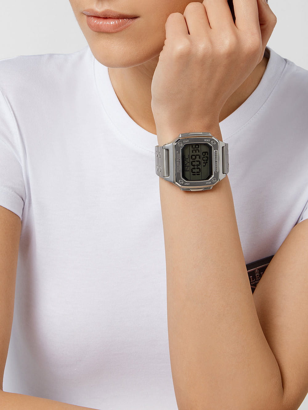 Электронные унисекс часы ХронографХронографФункция позволяет измерять отрезки времени с особой точностью: часы, минуты, секунды. Верным признаком хронографа является наличие на циферблате 3 дополнительных окошек-счётчиков. Philipp Plein Hyper Shock PWHAA0521, электронный механизм с высокой точностью. Класс водозащиты: 50 метров, позволит защитить корпус от случайных брызг или капель дождя. Прямоугольный корпус выполнен из нержавеющей стали с серебристого цвета. Браслет из нержавеющей стали шириной 22 мм, со стандартной застежкой.