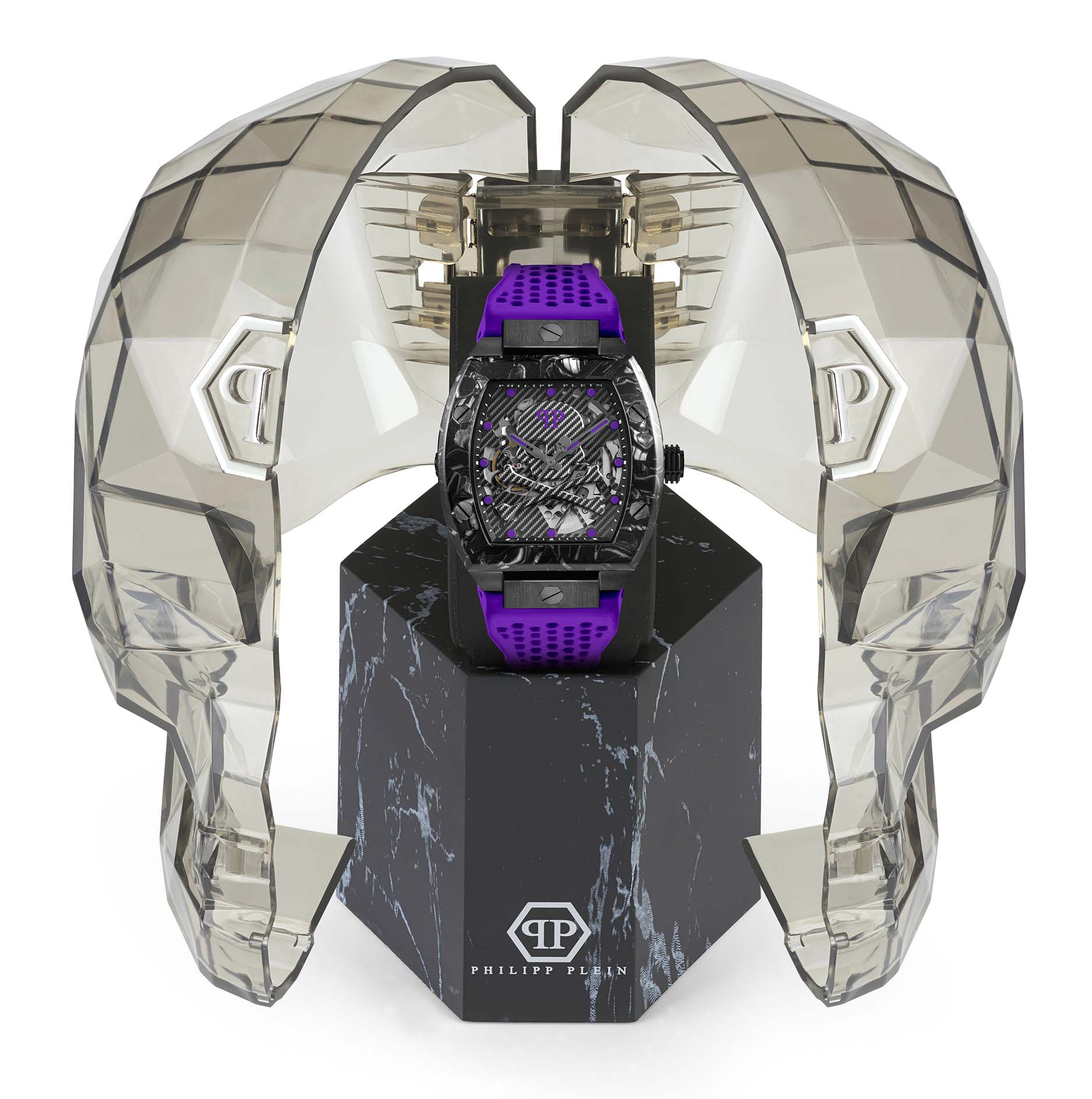 Яркие мужские часы с минеральным стекломМинеральное стеклоМинеральное стекло представляет собой искусственно выращенный минерал кварца. Такое стекло отличается особой устойчивостью к повреждениям и царапинам. Уступает по некоторым качествам сапфировому стеклу. Philipp Plein The Skeleton PWBAA0922, с автоматическим механизмом высокой точности. Класс водозащиты: 50 метров, позволит защитить корпус от случайных брызг или капель дождя. Корпус часов изготовлен из стали с IP-покрытиемIP-покрытиеМетод ионного напыления. Демонстрирует повышенную устойчивость к истиранию, окислению и химическим веществам. Под воздействием высокого давления и температуры около 1500°C молекулы металла надёжно соединяются с частицами корпуса часов..