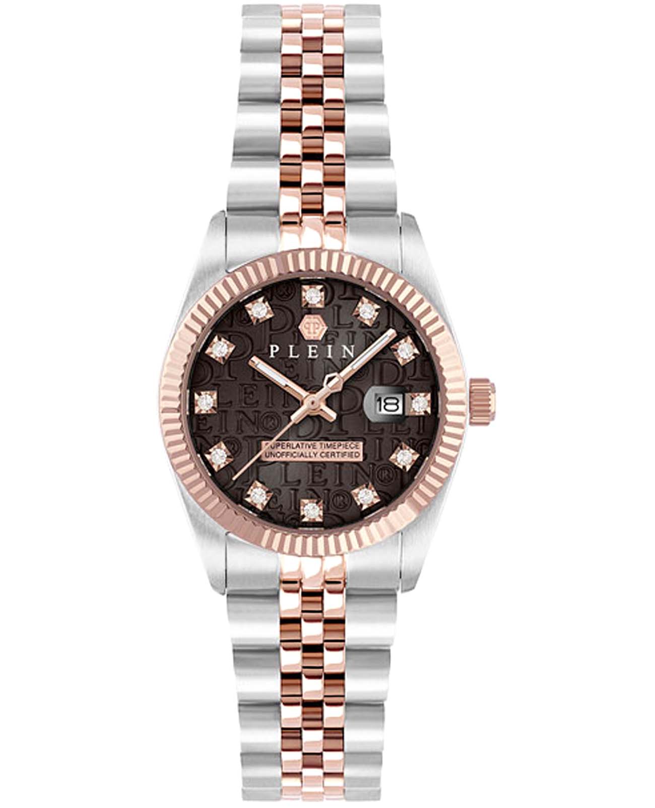 Philipp Plein DATE SUPERLATIVE PWNFA0625 - дерзкое заявление любви к роскоши и бунтарскому стилю. Диаметр круглого корпуса из прочной нержавеющей стали равен 28 мм. Стальной браслет на застёжке «бабочка» с кнопкамиЗастёжка "бабочка"Такой вид застёжки дополняется предохранителями, помогающими избежать случайного раскрытия браслета. Обладают изящным исполнением. обеспечивает надёжную фиксацию и комфортное ношение. Метки в виде кристаллов Preciosa. Минеральное стеклоМинеральное стеклоМинеральное стекло представляет собой искусственно выращенный минерал кварца. Такое стекло отличается особой устойчивостью к повреждениям и царапинам. Уступает по некоторым качествам сапфировому стеклу. защищает циферблат от царапин. Люминесцентное покрытиеЛюминесцентное покрытиеПозволяет считывать показания времени в темноте. Производители наносят на стрелки, часовые индексы, безель или поверхность циферблата светонакопительный состав, дающий холодное свечение. стрелок и меток позволит следить за временем даже в полной темноте. БезельБезельВнешний ободок, закрепляющий стекло. В спортивных часах так называется поворотное кольцо с делениями на циферблате, выполняет роль таймера – замеряет отрезки времени на шкале. Неподвижный безель – элемент декора. Однонаправленно вращающийся безель на дайверских часах позволяет фиксировать моменты погружения и выныривания на поверхность. с PVD-покрытиемPVDУльтратонкое покрытие наносится в технике вакуумного напыления, сочетает в себе нитрид титана особой прочности со слоем золота или оксида хрома. Несёт в себе декоративную или защитную функцию.. Граненая заводная головка. Влагозащита: 50 метров, позволит защитить корпус от случайных брызг или капель дождя. Идеальный аксессуар для тех, кто ценит индивидуальность и не боится выделяться из толпы.