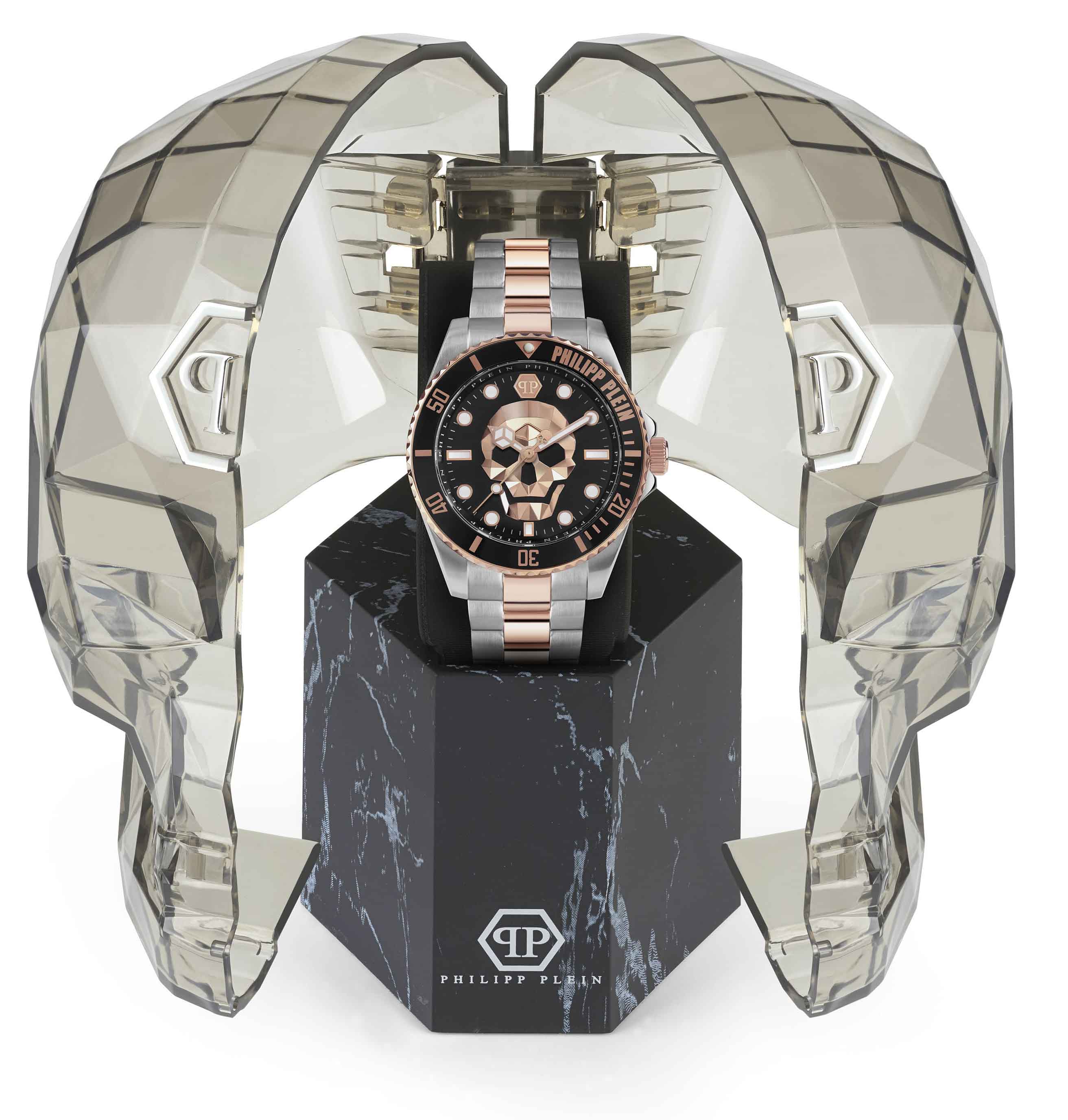 Яркие мужские часы с минеральным стекломМинеральное стеклоМинеральное стекло представляет собой искусственно выращенный минерал кварца. Такое стекло отличается особой устойчивостью к повреждениям и царапинам. Уступает по некоторым качествам сапфировому стеклу. Philipp Plein The Skull PWOAA0822, кварцевый механизм с высокой точностью. Класс водозащиты: 50 метров, позволит защитить корпус от случайных брызг или капель дождя. Корпус часов изготовлен из стали. Циферблат с метками в виде штрихов и точек украшен трехмерным граненым черепом и логотипом. Шестигранная заводная головка с защитой. Застёжка бабочка с кнопкамиЗастёжка "бабочка"Такой вид застёжки дополняется предохранителями, помогающими избежать случайного раскрытия браслета. Обладают изящным исполнением. .
