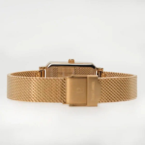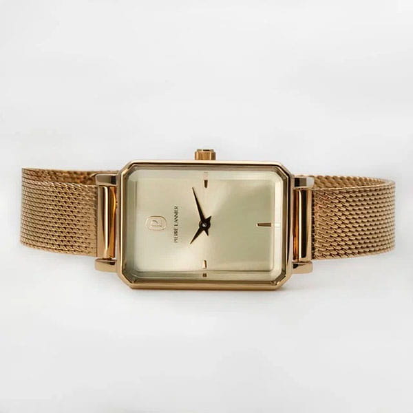 Женские кварцевые часы Pierre Lannier — это элегантный аксессуар с французским дизайном. Корпус прямоугольной формы размером 21 мм и толщиной 7,8 мм выполнен из нержавеющей стали с IP-покрытиемIP-покрытиеМетод ионного напыления. Демонстрирует повышенную устойчивость к истиранию, окислению и химическим веществам. Под воздействием высокого давления и температуры около 1500°C молекулы металла надёжно соединяются с частицами корпуса часов. цвета жёлтого золота. Циферблат золотистого цвета оформлен стрелками. Циферблат защищён минеральным стекломМинеральное стеклоМинеральное стекло представляет собой искусственно выращенный минерал кварца. Такое стекло отличается особой устойчивостью к повреждениям и царапинам. Уступает по некоторым качествам сапфировому стеклу., устойчивым к мелким механическим повреждениям. Часы оснащены стальным браслетом миланского плетения с IP-покрытиемIP-покрытиеМетод ионного напыления. Демонстрирует повышенную устойчивость к истиранию, окислению и химическим веществам. Под воздействием высокого давления и температуры около 1500°C молекулы металла надёжно соединяются с частицами корпуса часов. на раскладной застёжкеРаскладная застёжкаТакой тип застёжки используется только на браслетах из металла. Она никогда не раскрывается полностью, происходит разделение на 2 и более частей. Раскладывающая застёжка снизит вероятность потери часов к минимуму.. В комплект входит дополнительный кожаный ремешок. Водонепроницаемость 30 м позволяет использовать часы в повседневных условиях. Идеальный выбор для тех, кто ценит французский стиль и универсальный дизайн.