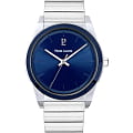 Мужские кварцевые часы Pierre Lannier Candide 214K161. Минеральное стеклоМинеральное стеклоМинеральное стекло представляет собой искусственно выращенный минерал кварца. Такое стекло отличается особой устойчивостью к повреждениям и царапинам. Уступает по некоторым качествам сапфировому стеклу. устойчивое к мелким механическим повреждениям. Центральные часовая, минутная и секундная стрелки. Корпус выполнен из нержавеющей стали. Неподвижный безельБезельВнешний ободок, закрепляющий стекло. В спортивных часах так называется поворотное кольцо с делениями на циферблате, выполняет роль таймера – замеряет отрезки времени на шкале. Неподвижный безель – элемент декора. Однонаправленно вращающийся безель на дайверских часах позволяет фиксировать моменты погружения и выныривания на поверхность. из нержавеющей стали с IP-покрытиемIP-покрытиеМетод ионного напыления. Демонстрирует повышенную устойчивость к истиранию, окислению и химическим веществам. Под воздействием высокого давления и температуры около 1500°C молекулы металла надёжно соединяются с частицами корпуса часов.. Водостойкость: 30 метров, позволит защитить корпус от случайных брызг или капель дождя. Стальной браслет с раскладной застёжкойРаскладная застёжкаТакой тип застёжки используется только на браслетах из металла. Она никогда не раскрывается полностью, происходит разделение на 2 и более частей. Раскладывающая застёжка снизит вероятность потери часов к минимуму..