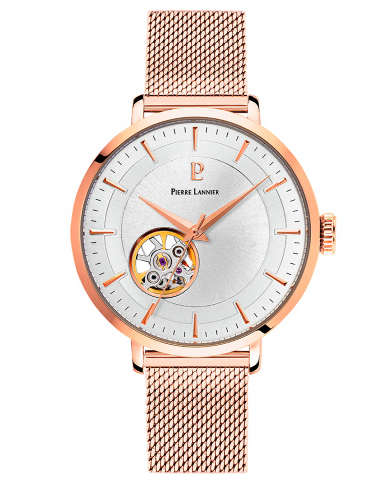 Женские механические часы с автоподзаводом Pierre Lannier Automatic 307F928. Минеральное стеклоМинеральное стеклоМинеральное стекло представляет собой искусственно выращенный минерал кварца. Такое стекло отличается особой устойчивостью к повреждениям и царапинам. Уступает по некоторым качествам сапфировому стеклу. устойчивое к мелким механическим повреждениям. Центральные часовая, минутная и секундная стрелки. Серебристый циферблат с часовыми индексами в виде штрихов. Корпус и браслет выполнен из нержавеющей стали с IP-покрытиемIP-покрытиеМетод ионного напыления. Демонстрирует повышенную устойчивость к истиранию, окислению и химическим веществам. Под воздействием высокого давления и температуры около 1500°C молекулы металла надёжно соединяются с частицами корпуса часов.. Водостойкость: 30 метров, позволит защитить корпус от случайных брызг или капель дождя. Прозрачная задняя крышка. Браслет миланского плетения с раскладной застёжкойРаскладная застёжкаТакой тип застёжки используется только на браслетах из металла. Она никогда не раскрывается полностью, происходит разделение на 2 и более частей. Раскладывающая застёжка снизит вероятность потери часов к минимуму..