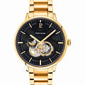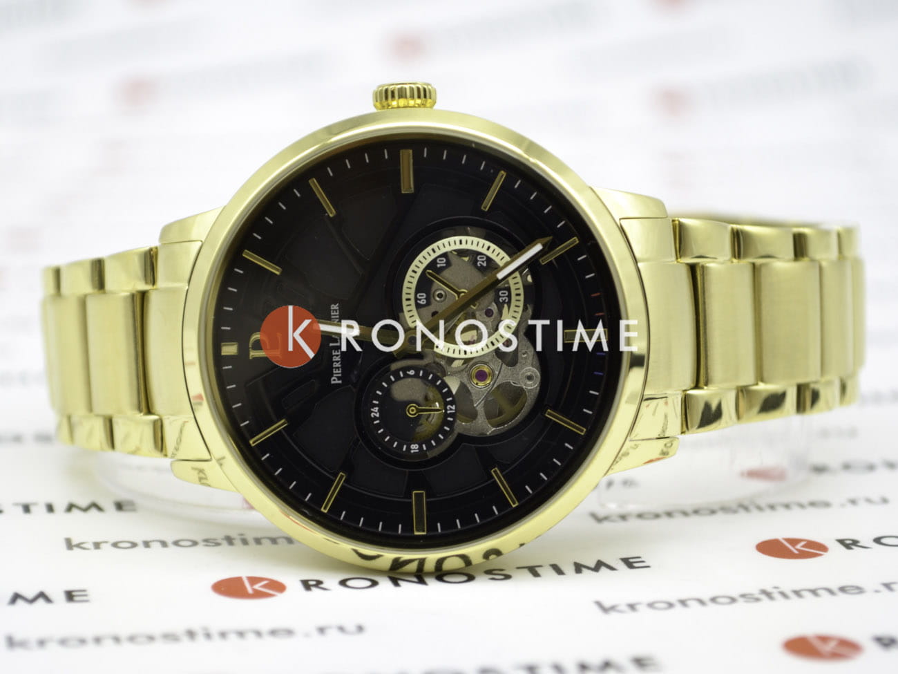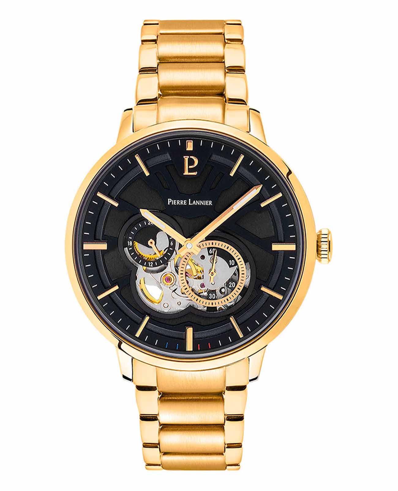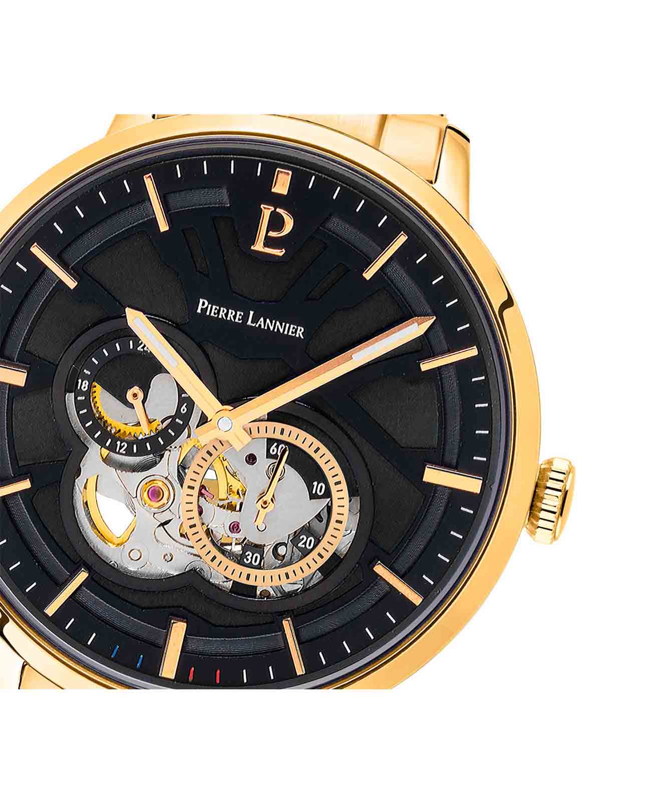 Мужские механические часы с автоподзаводом Pierre Lannier Trio 333D032. Минеральное стеклоМинеральное стеклоМинеральное стекло представляет собой искусственно выращенный минерал кварца. Такое стекло отличается особой устойчивостью к повреждениям и царапинам. Уступает по некоторым качествам сапфировому стеклу. устойчивое к мелким механическим повреждениям. Корпус выполнен из нержавеющей стали с IP-покрытиемIP-покрытиеМетод ионного напыления. Демонстрирует повышенную устойчивость к истиранию, окислению и химическим веществам. Под воздействием высокого давления и температуры около 1500°C молекулы металла надёжно соединяются с частицами корпуса часов.. Центральные часовая и минутная стрелки, секундная стрелка вынесена в малый циферблат. 12/24х часовой формат времени. Черный скелетонизированный циферблат. Стрелки с люминесцентным покрытиемЛюминесцентное покрытиеПозволяет считывать показания времени в темноте. Производители наносят на стрелки, часовые индексы, безель или поверхность циферблата светонакопительный состав, дающий холодное свечение.. Класс водозащиты: 50 метров, позволит защитить корпус от случайных брызг или капель дождя. Стальной браслет с IP-покрытиемIP-покрытиеМетод ионного напыления. Демонстрирует повышенную устойчивость к истиранию, окислению и химическим веществам. Под воздействием высокого давления и температуры около 1500°C молекулы металла надёжно соединяются с частицами корпуса часов. на раскладной застёжкеРаскладная застёжкаТакой тип застёжки используется только на браслетах из металла. Она никогда не раскрывается полностью, происходит разделение на 2 и более частей. Раскладывающая застёжка снизит вероятность потери часов к минимуму..