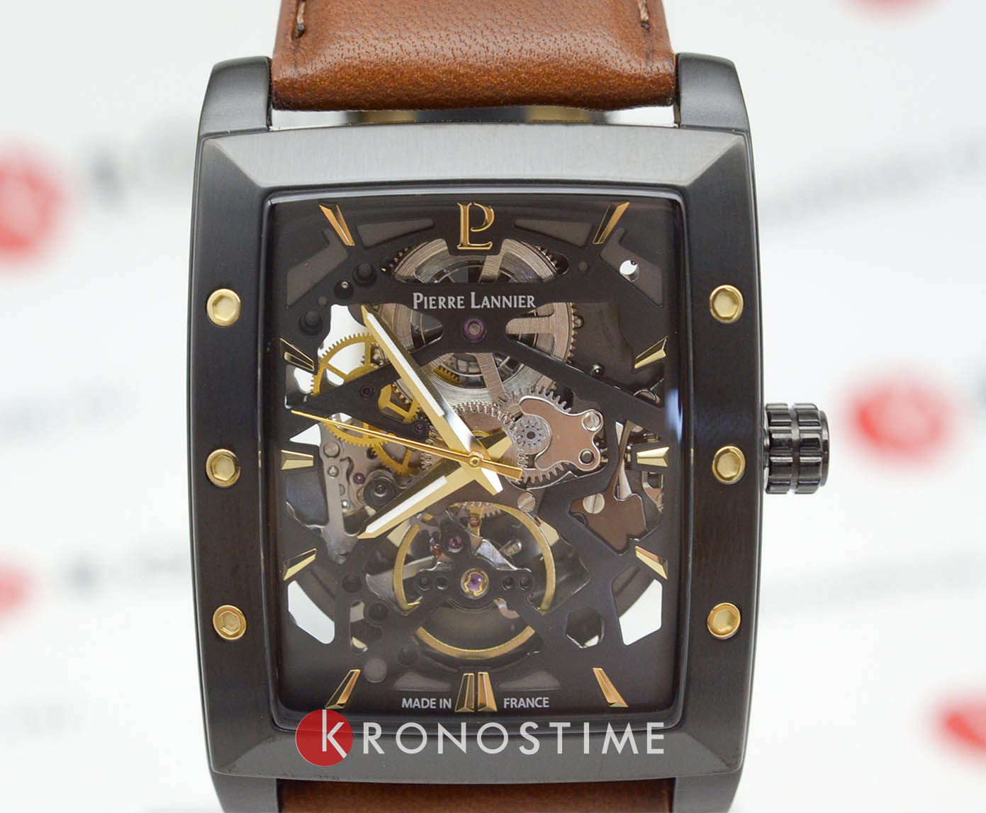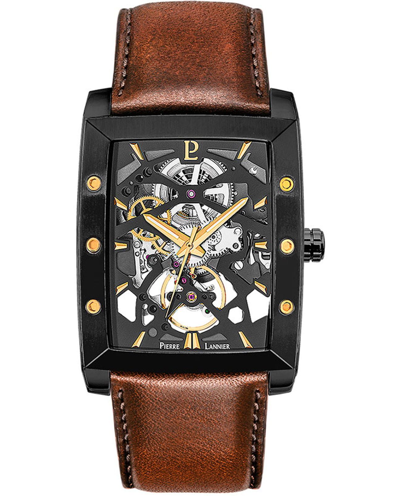 Мужские механические часы с автоподзаводом Pierre Lannier Hector 339A434. Минеральное стеклоМинеральное стеклоМинеральное стекло представляет собой искусственно выращенный минерал кварца. Такое стекло отличается особой устойчивостью к повреждениям и царапинам. Уступает по некоторым качествам сапфировому стеклу. устойчивое к мелким механическим повреждениям. Скелетонизированный циферблат. Центральные часовая, минутная и секундная стрелки. Стрелки с люминесцентным покрытиемЛюминесцентное покрытиеПозволяет считывать показания времени в темноте. Производители наносят на стрелки, часовые индексы, безель или поверхность циферблата светонакопительный состав, дающий холодное свечение.. Корпус выполнен из нержавеющей стали с IP-покрытиемIP-покрытиеМетод ионного напыления. Демонстрирует повышенную устойчивость к истиранию, окислению и химическим веществам. Под воздействием высокого давления и температуры около 1500°C молекулы металла надёжно соединяются с частицами корпуса часов.. Размер корпуса составляет 42,6 х 36,6 мм. Водостойкость 30 метров, позволит защитить корпус от случайных брызг или капель дождя. Кожаный ремешок на стандартной застёжке.