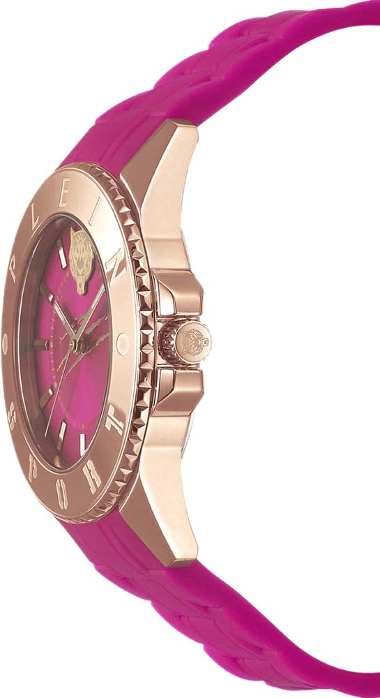 Немецкие женские кварцевые часы с минеральным стекломМинеральное стеклоМинеральное стекло представляет собой искусственно выращенный минерал кварца. Такое стекло отличается особой устойчивостью к повреждениям и царапинам. Уступает по некоторым качествам сапфировому стеклу. Plein Sport Glam PSKBA0523, кварцевый механизм с высокой точностью. Класс водозащиты: 50 метров, позволит защитить корпус от случайных брызг или капель дождя. Корпус часов изготовлен из стали с IP-покрытиемIP-покрытиеМетод ионного напыления. Демонстрирует повышенную устойчивость к истиранию, окислению и химическим веществам. Под воздействием высокого давления и температуры около 1500°C молекулы металла надёжно соединяются с частицами корпуса часов.. Силиконовый ремешок на стандартной застёжке. Стрелки с люминесцентным покрытиемЛюминесцентное покрытиеПозволяет считывать показания времени в темноте. Производители наносят на стрелки, часовые индексы, безель или поверхность циферблата светонакопительный состав, дающий холодное свечение..